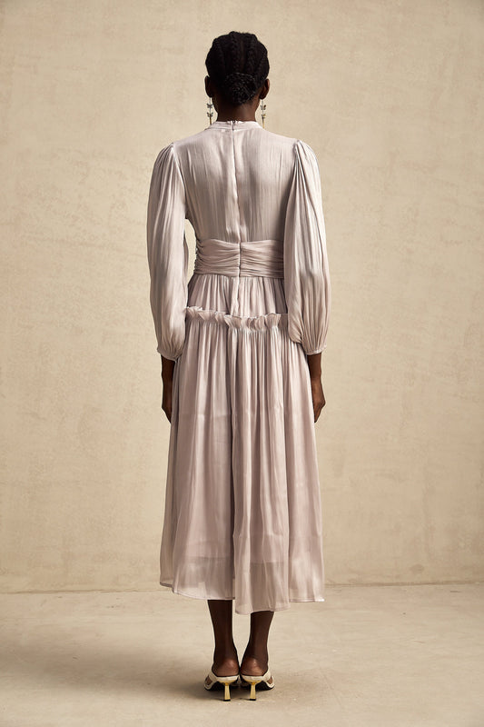 45% İndirimLeonor Saten Bedene Oturan Kloş Midi Elbise