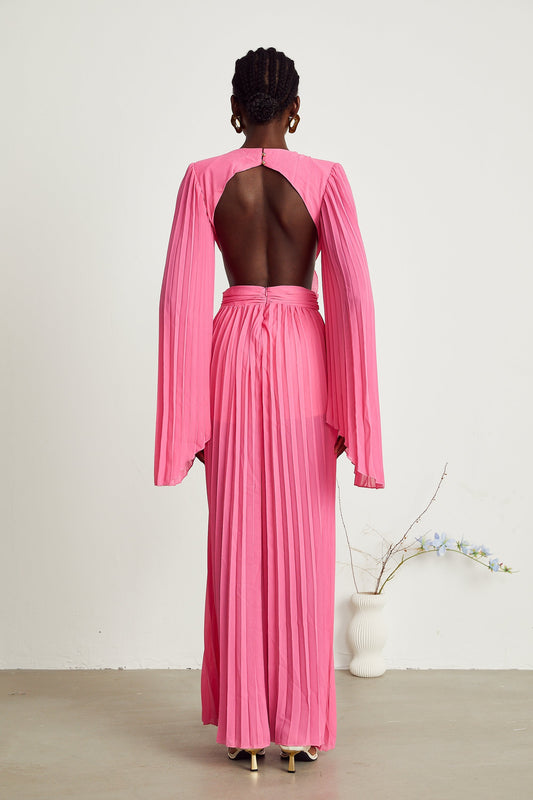 42% İndirimArina Asimetrik Pileli Maksi Elbise Bebek Pembe
