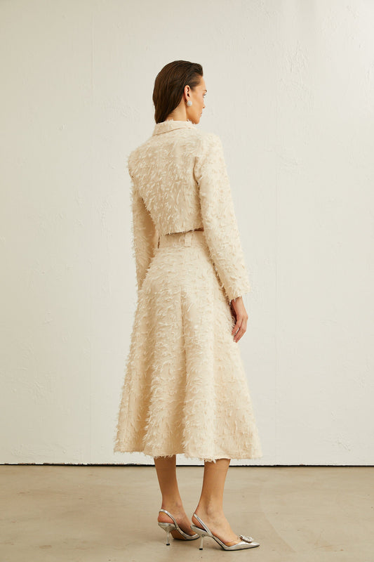 30% İndirimKarine Beyaz Saçaklı Ceket & Etek Kombin Takım