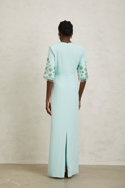 28% İndirimManuela Nane Yeşili Kristal İşlemeli Uzun Elbise