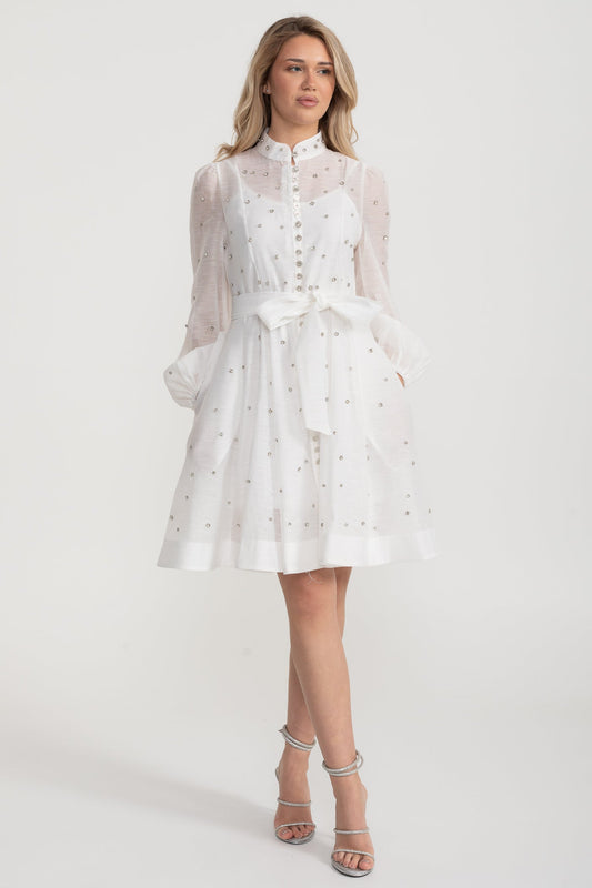 20% İndirimKristal Süslemeli Uzun Kollu Mini Elbise
