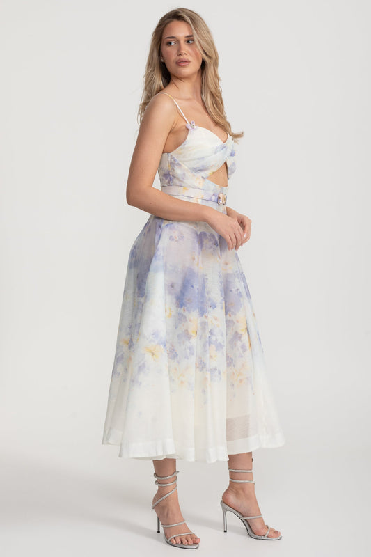 Suluboya Çapraz Kesim Midi Elbise Kemerli - Pastel