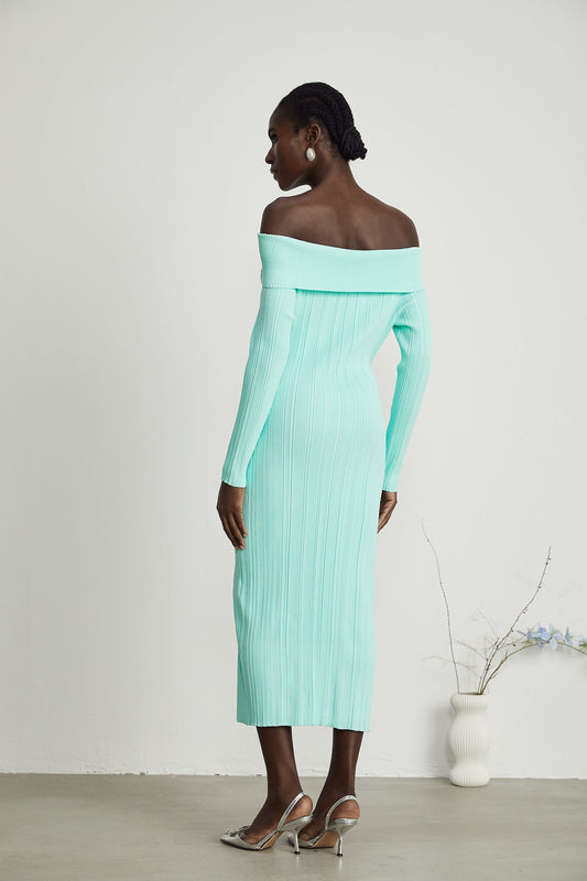 22% İndirimCarmen Omuzları Açık Örme Midi Elbise