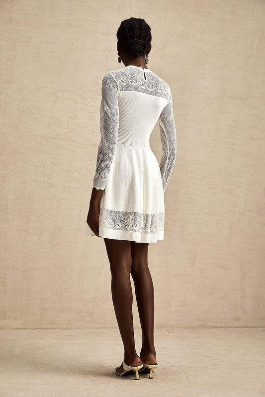 Anastasie Beyaz Pointelle Panelli Örme Mini Elbise