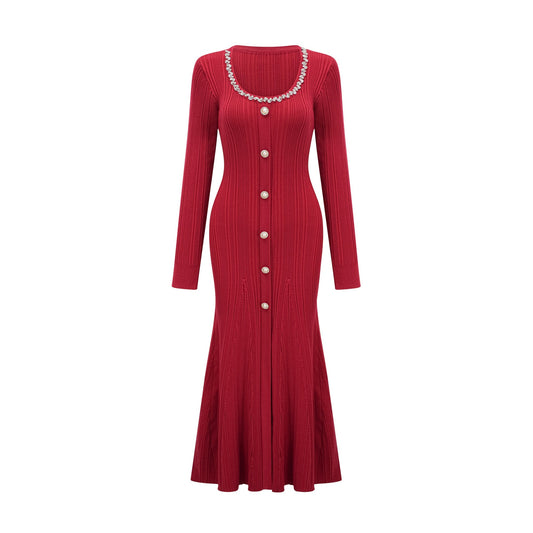 22% İndirimAnaxarete Kırmızı İşlemeli Örme Midi Elbise