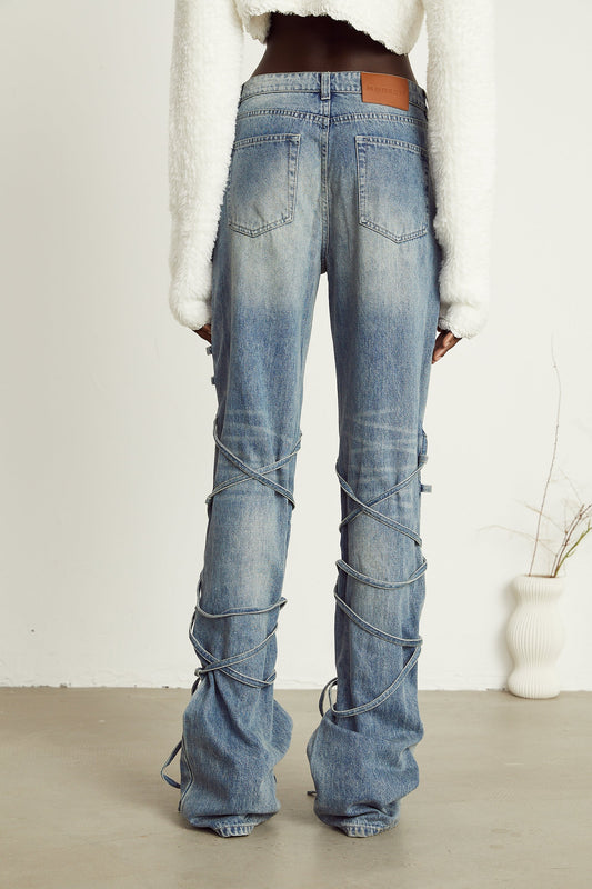 Camille Yüksek Belli, Geniş Paça, Yapay Taşlarla Pantolon Jean Pantolon