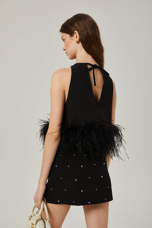 Justine Siyah Süslemeli Boyundan Bağlamalı Mini Elbise