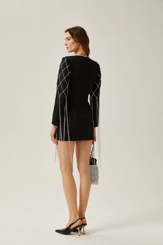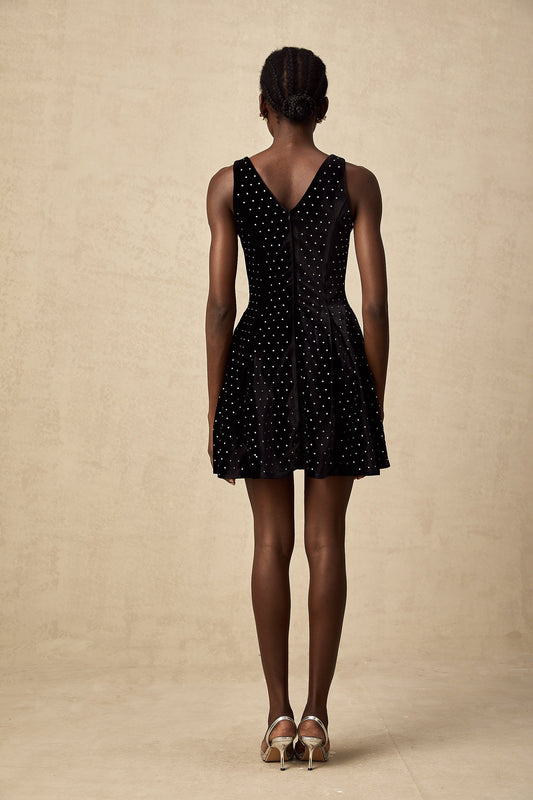 20% İndirimMireille Siyah Kristal Süslemeli Mini Elbise