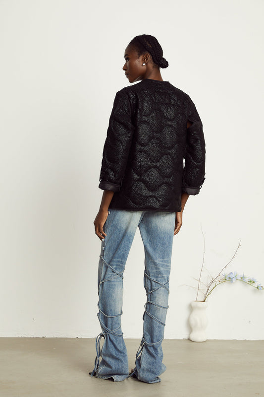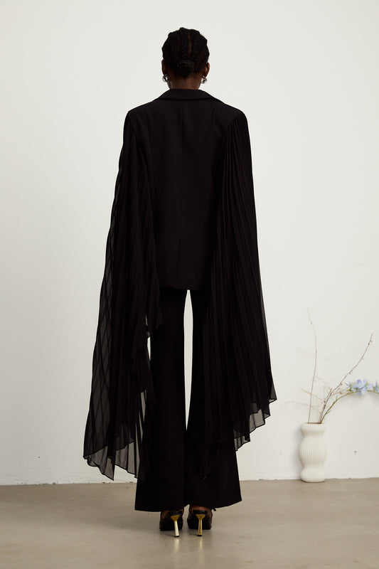 15% İndirimJustine Siyah Tül Panelli, Geniş Kollu Blazer