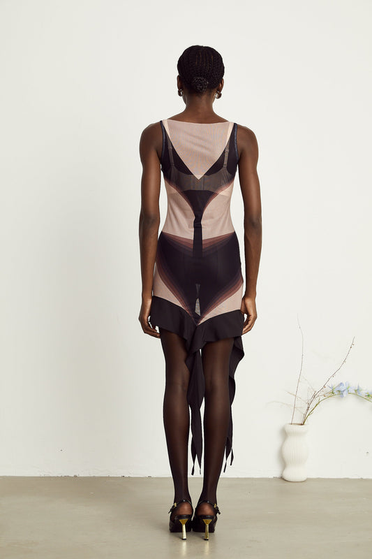 20% İndirimIrène Siyah Fileli Asimetrik Mini Elbise