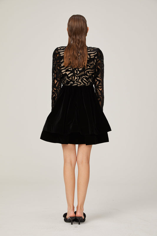 25% İndirimIrène Kadife Dantel Detaylı Mini Elbise