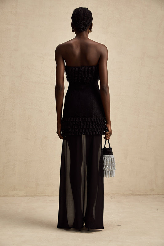 Liane Siyah Kristal Süslemeli Yarı Şeffaf Maksi Elbise