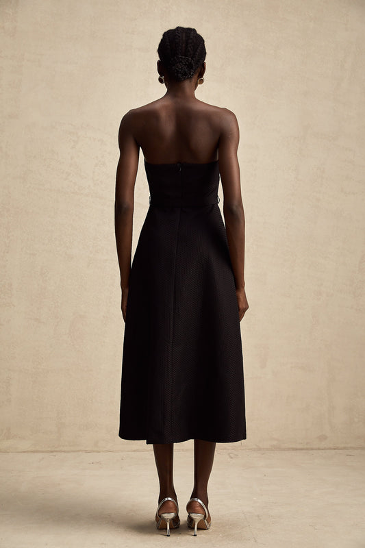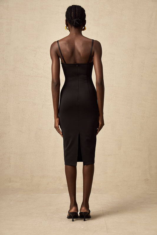 Juliette Siyah Zincir Süslemeli Büstiyer Midi Elbise