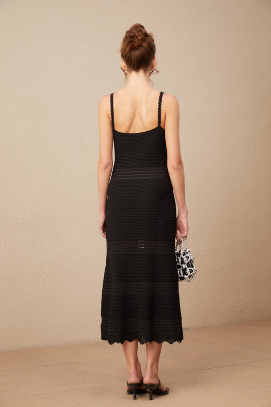 Jeanne Siyah Çember Süslemelerili Örme Midi Elbise