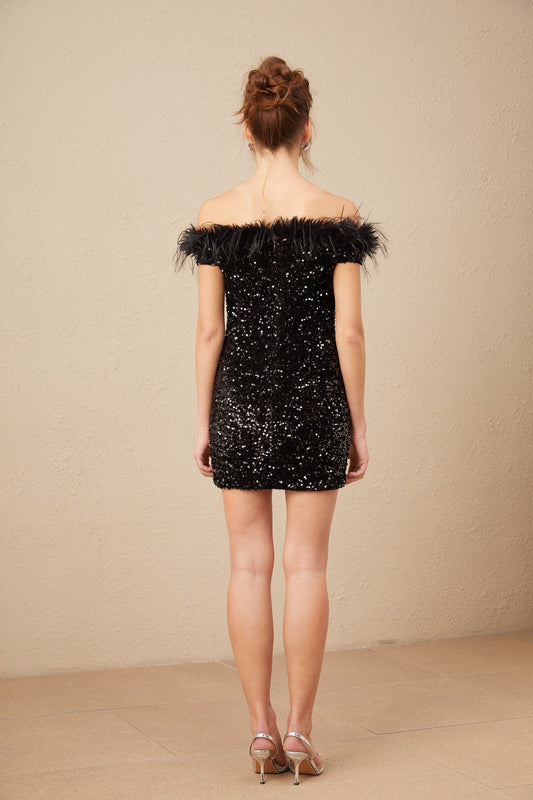19% İndirimMélina Fiyonk Süslemeli Payetli Mini Elbise