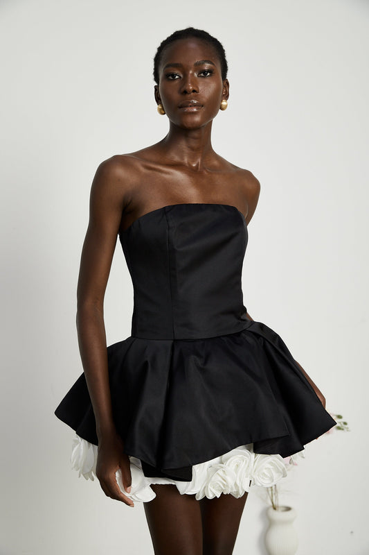 Lucie Siyah Petal Katlı Straplez Korse Mini Elbise