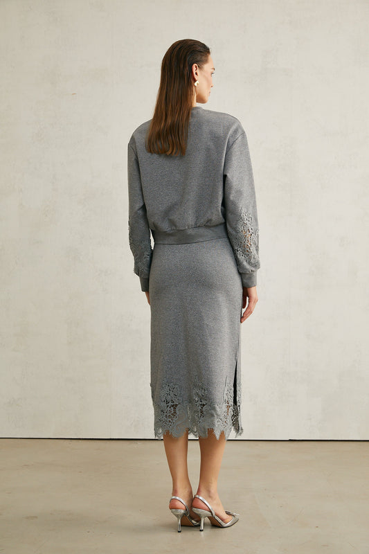 Nicole Gri Dantel Detaylı Üst Ve Etek Uyumlu Takım