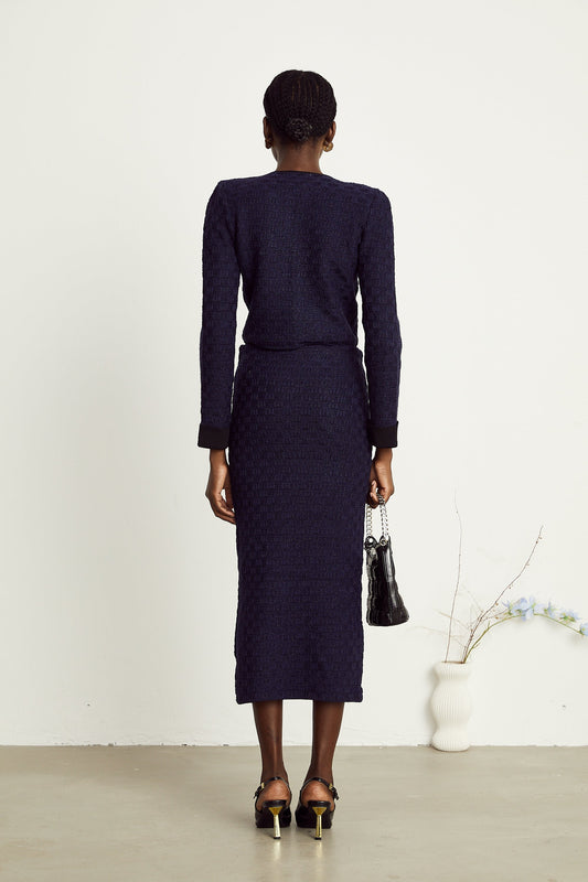 Tweed Süslemeli Üst ve Saten Uzun Etekten Oluşan Takım Elbise - Lacivert