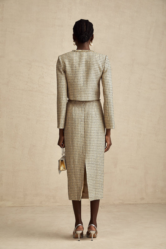 Pauline Zincir Süslemeli Tüvit Ceket & Yelek Üst & Etek Eşleştirme Seti