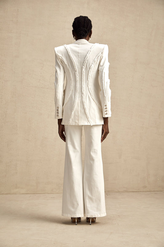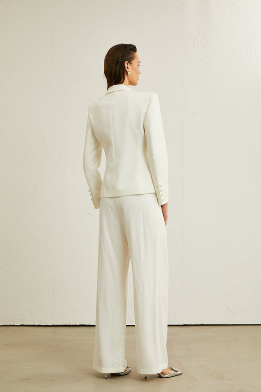 Raphaëlle Beyaz İşlemeli Ceket Ve Pantolon Uyumlu Takım