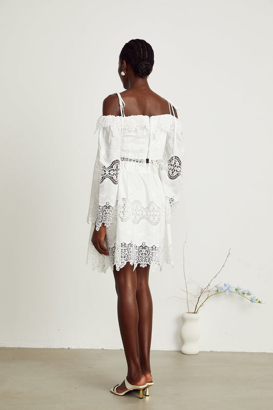 Ursule Beyaz Dantel Panelli Üst Ve Etek Uyumlu Takım