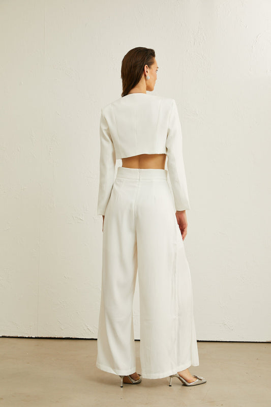 Rachel Beyaz Tül Panelli Blazer & Pantolon Kombin Takım