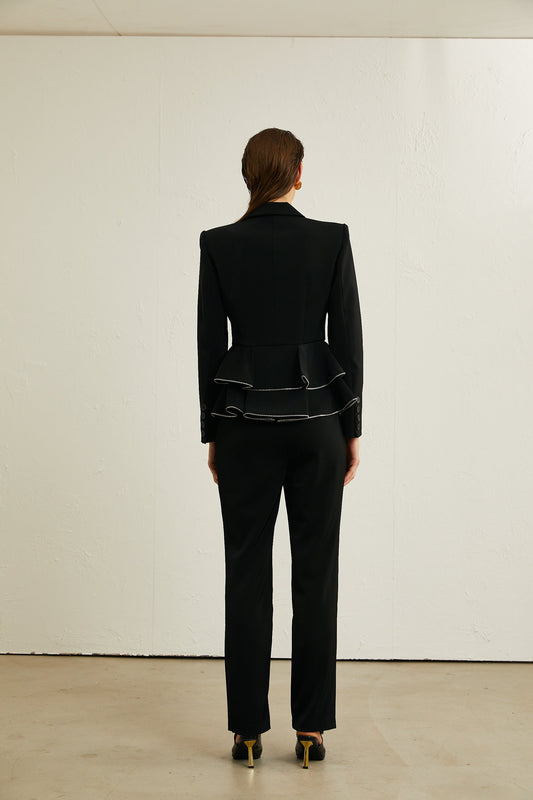Suzanne Siyah Pilili Ceket Ve Pantolon Uyumlu Takım