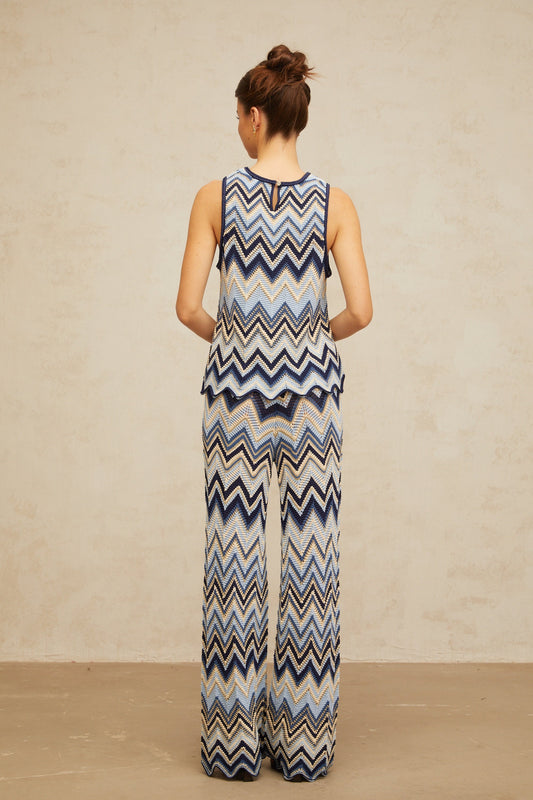 Irina mavi zikzak örgülü pointelle örgü üst ve pantolon takım