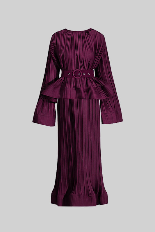 19% İndirimPileli Üst ve Uzun Etekli Şık Kombin - Bordo