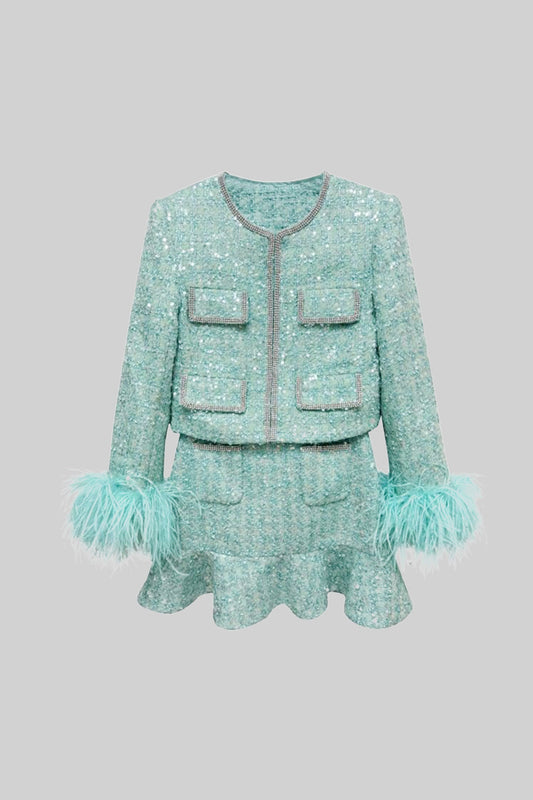 Valérie Kuş Tüyü Etek Blazer Ceket Ve Etek Eşleştirme Seti