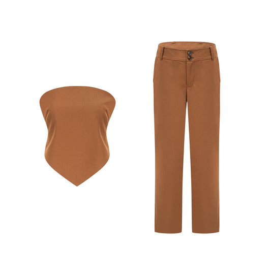 Célestine Kahverengi Bükümlü Kesik Üst Ve Etek Uyumlu Takım