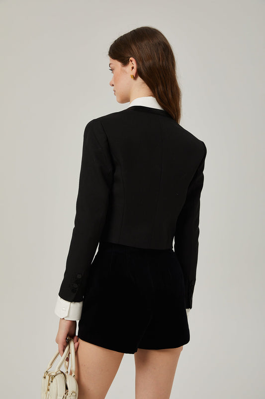 Claudine Siyah Metalik Tüvit Ceket Ve Şort Eşleştirme Seti