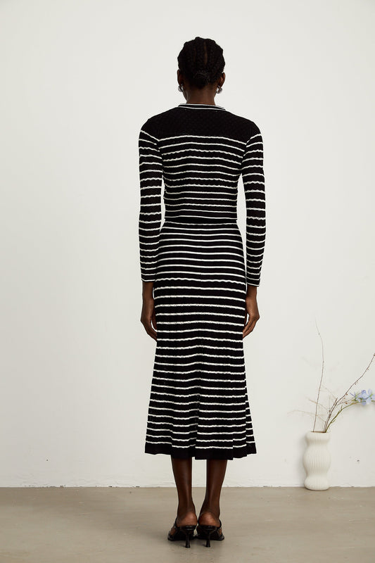 Cécilie Kontrast Efektlerili Örme Hırka Ve Etek Eşleştirme Seti