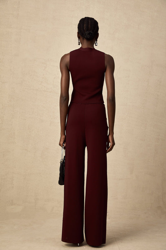 Calandra Koyu Kırmızı Örgü Elbise & Pantolon Kombin Seti
