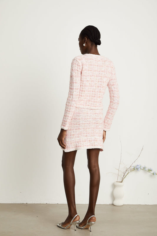 Capucine Pembe Ekose Desenli Hırka & Etek Eşleştirme Seti