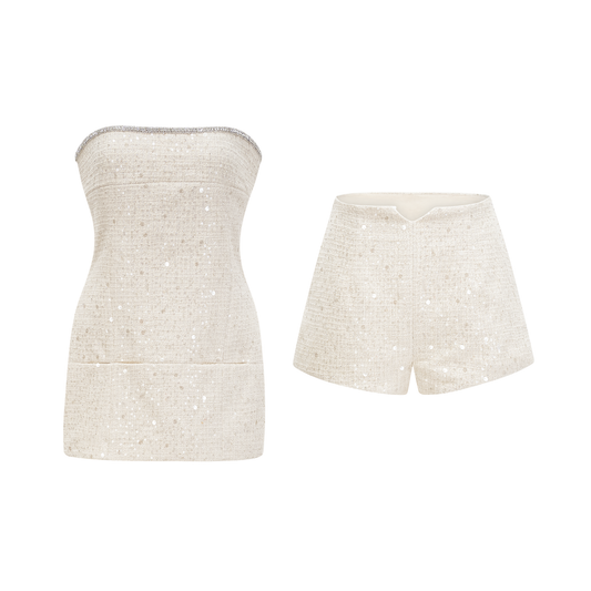 Elisabeth Bej Kristal Tüvit Hırka & Etek Eşleştirme Seti