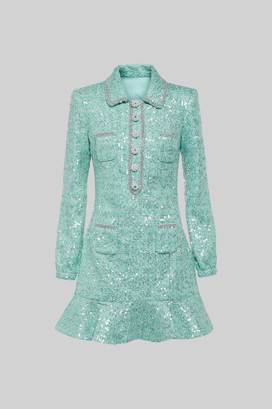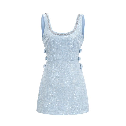 20% İndirimManon Mavi Tüvit Payetli Mini Elbise