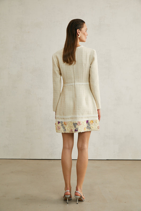 Elisabeth A Kesim Kolsuz Boncuklu Tüvit Mini Elbise Beyaz