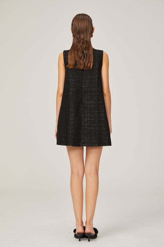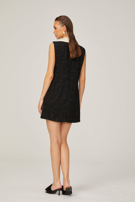 19% İndirimClaudine Siyah Kolsuz Kareli Tüvit Mini Elbise