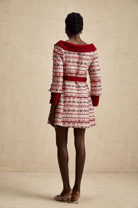 39% İndirimCapucine Kırmızı Kareli Tüvit Mini Elbise