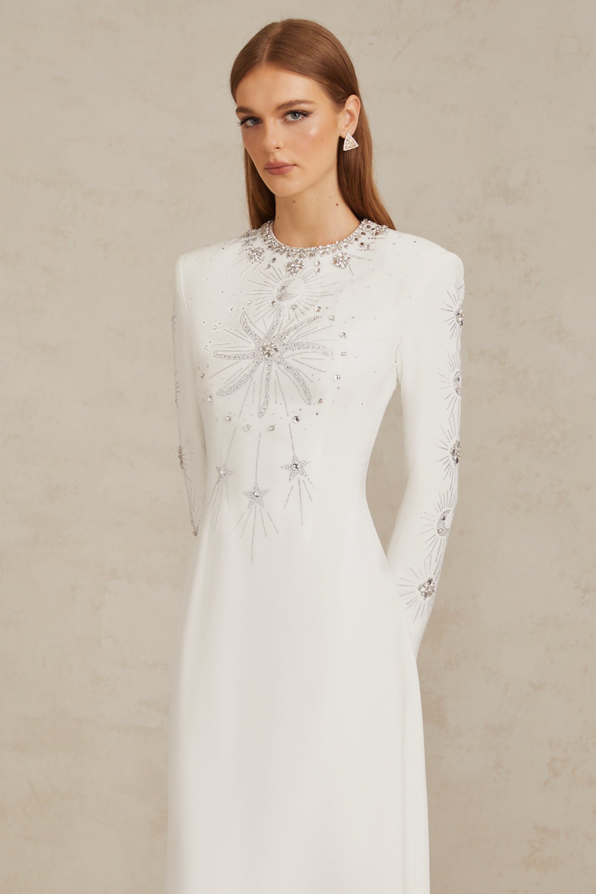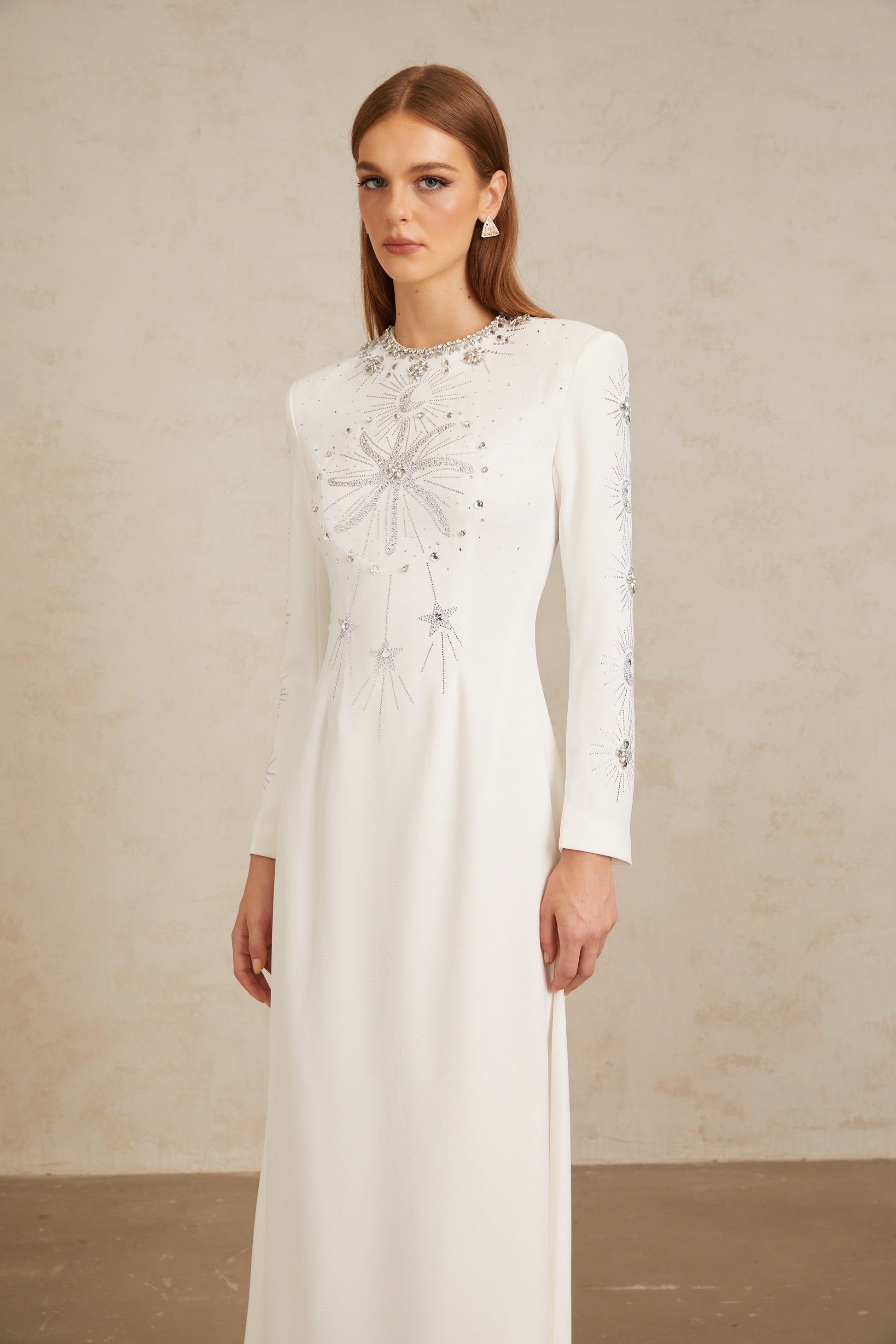 Aloïse Beyaz Süslemeli Uzun Elbise