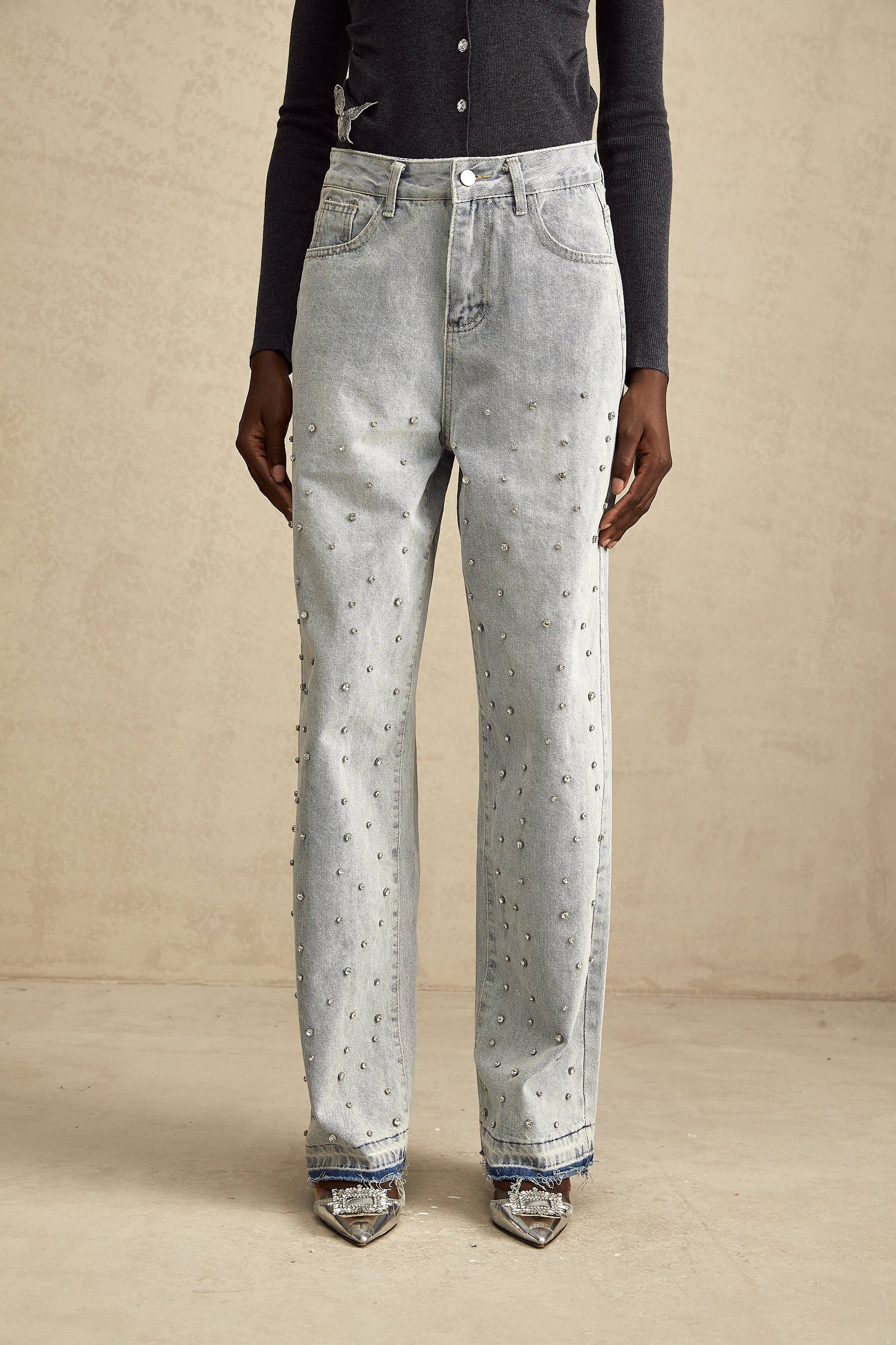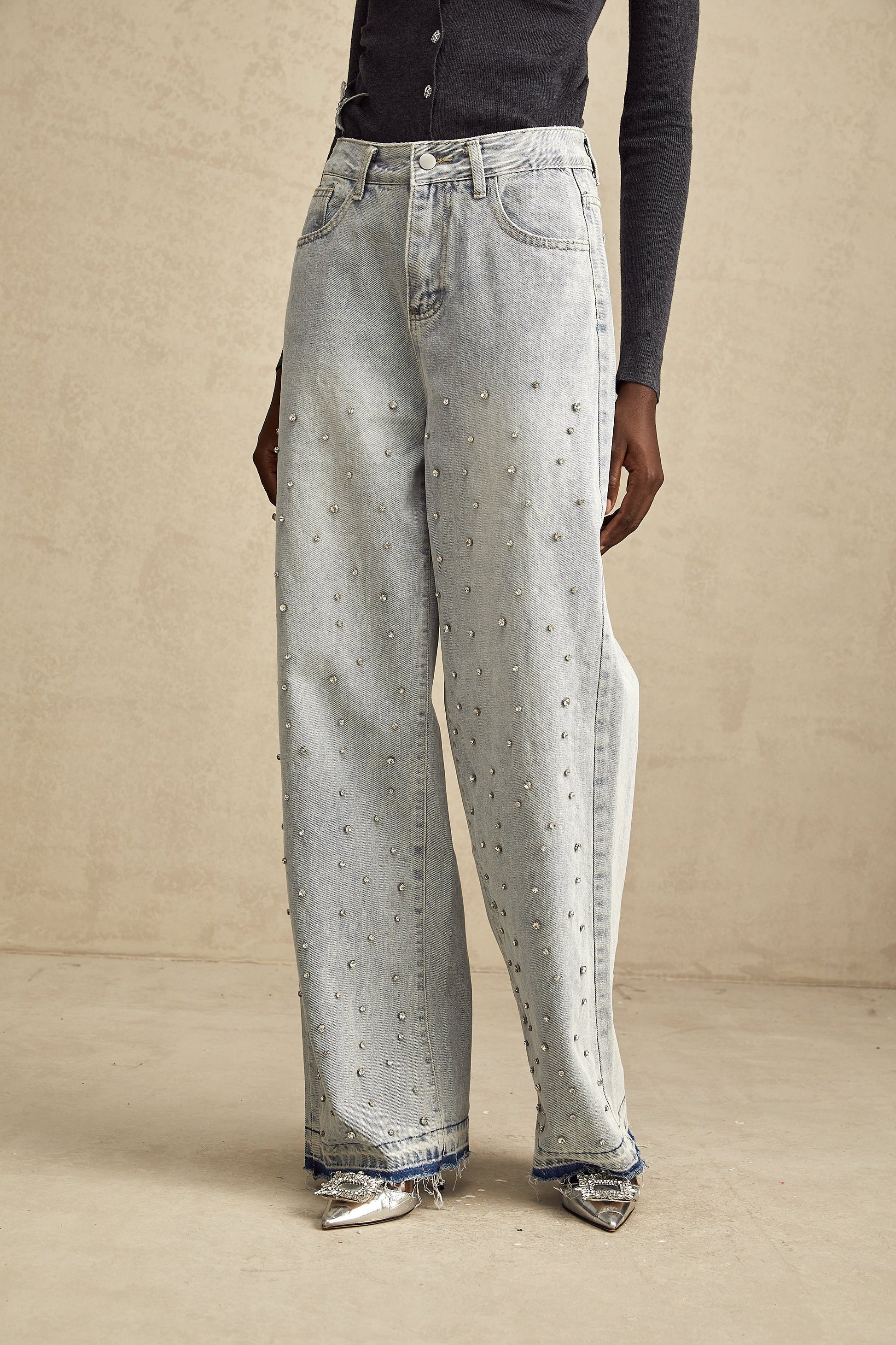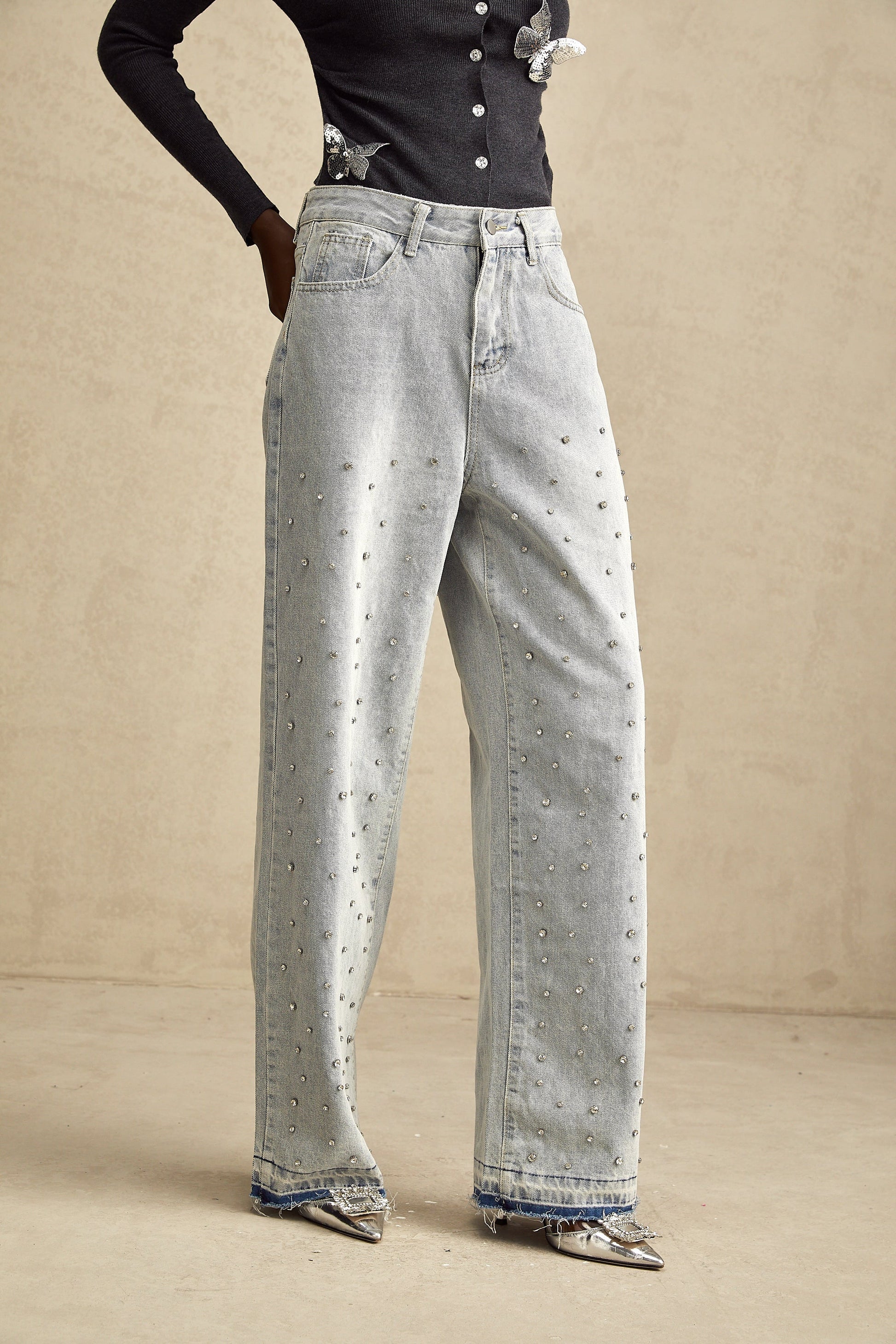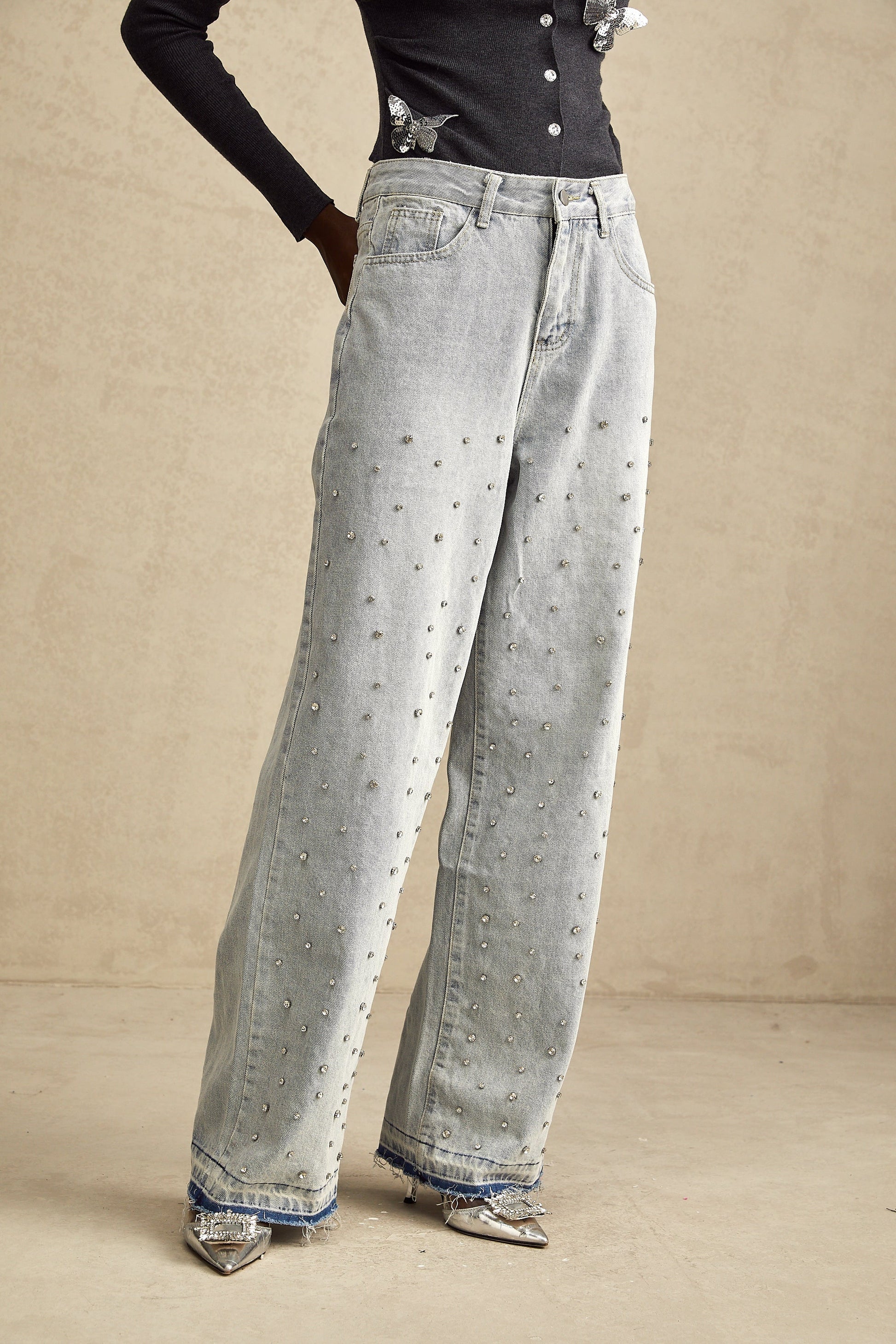 Camille Yüksek Belli, Geniş Paça, Yapay Taşlarla Pantolon Jean Pantolon