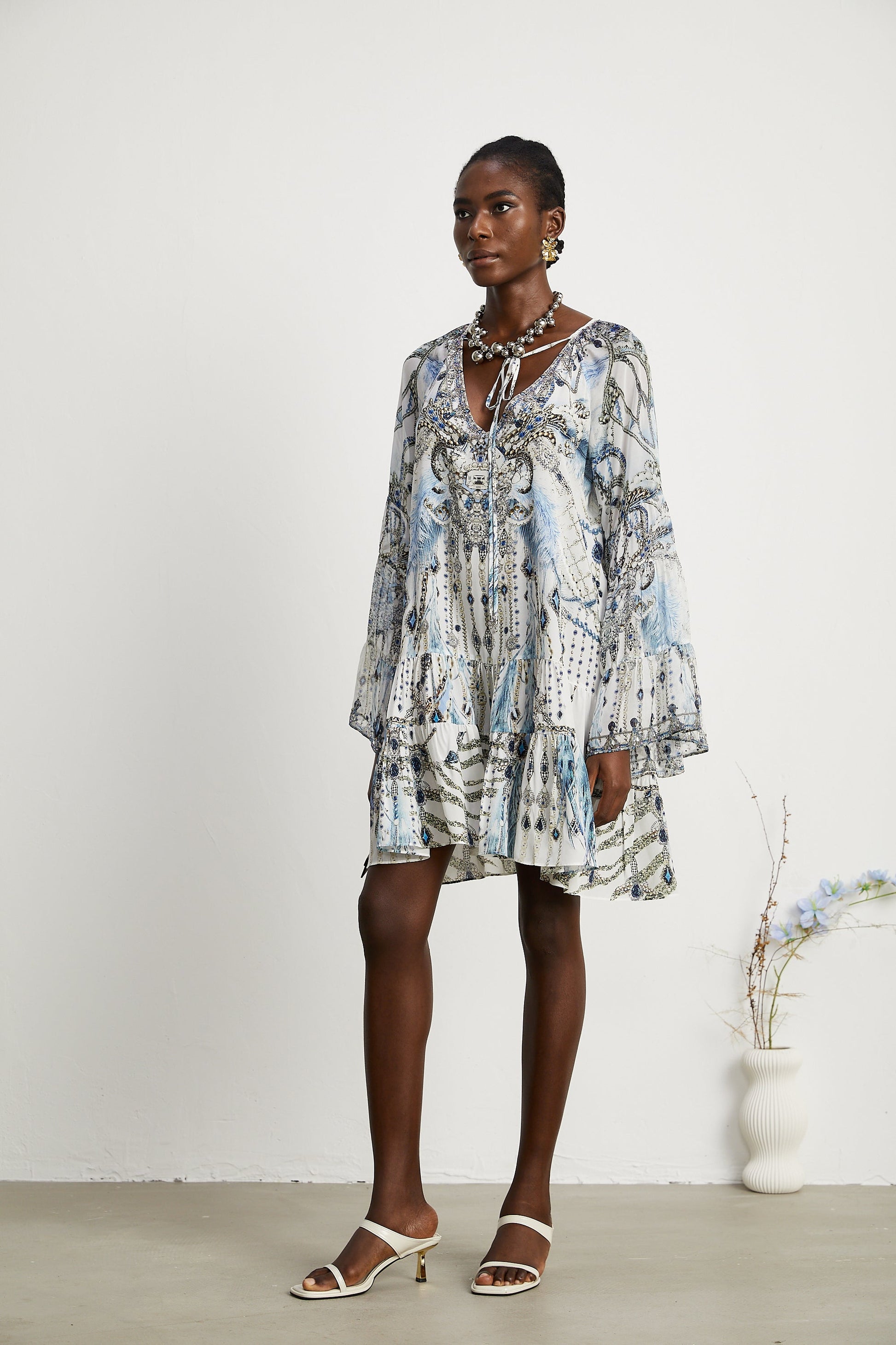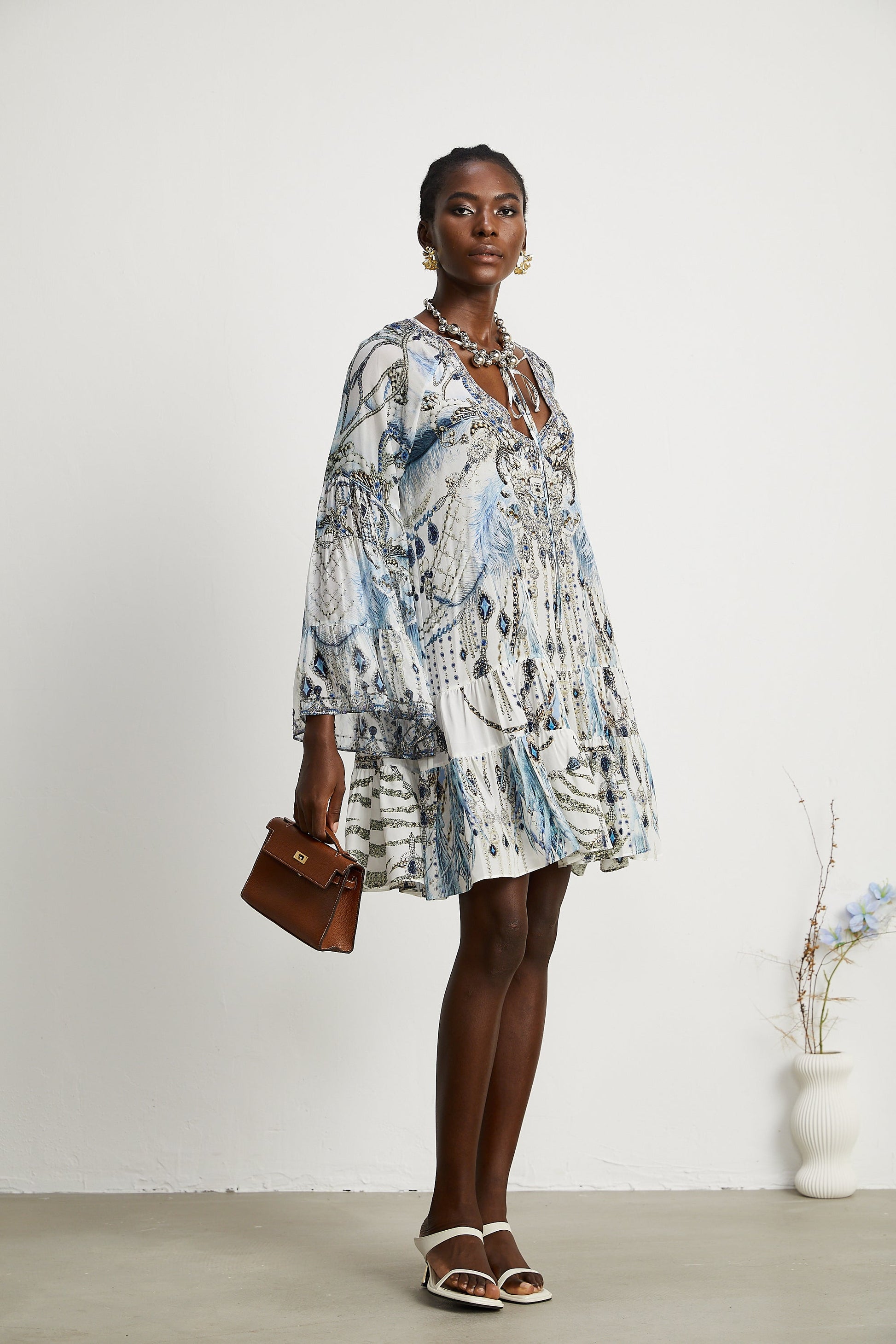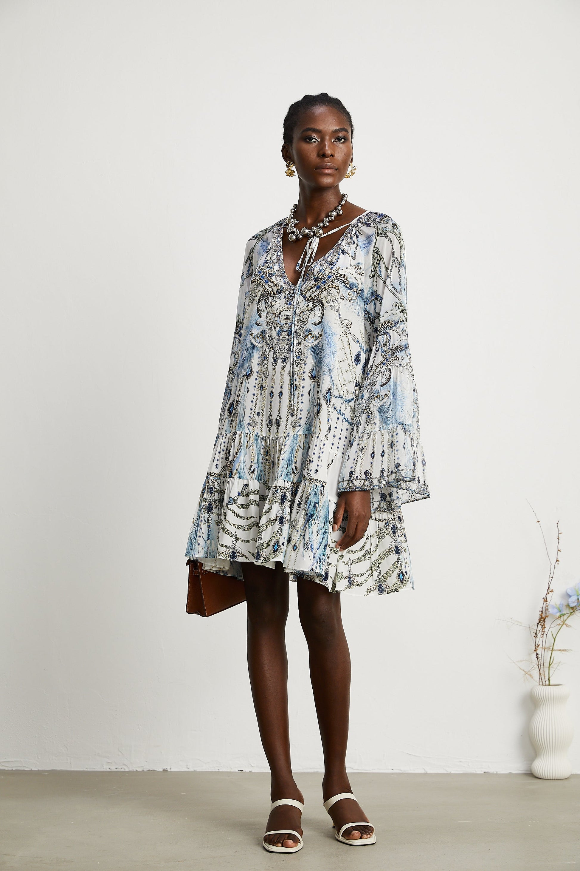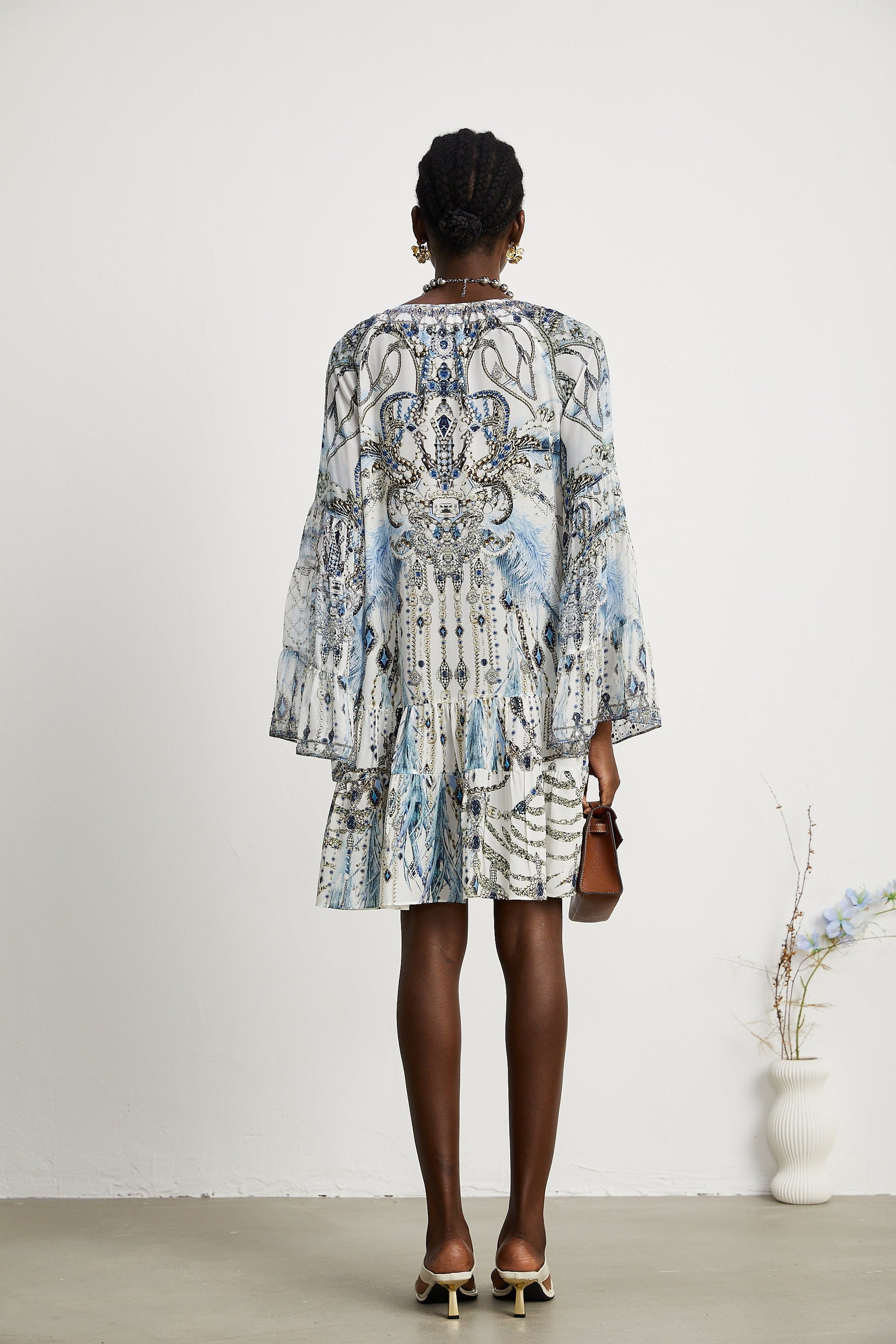 Clarabelle İpek Kloş Buzgülü Panelli Elbise