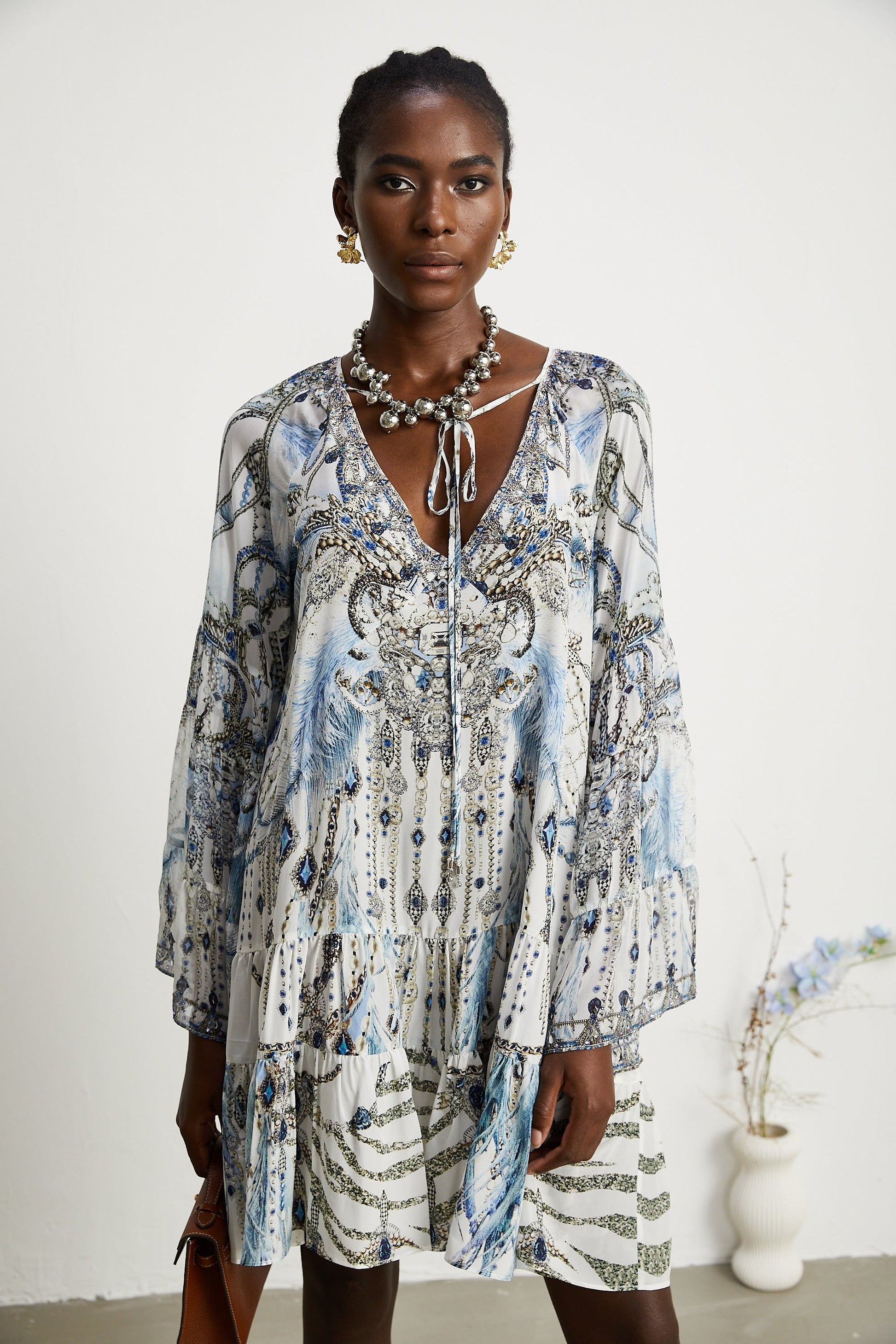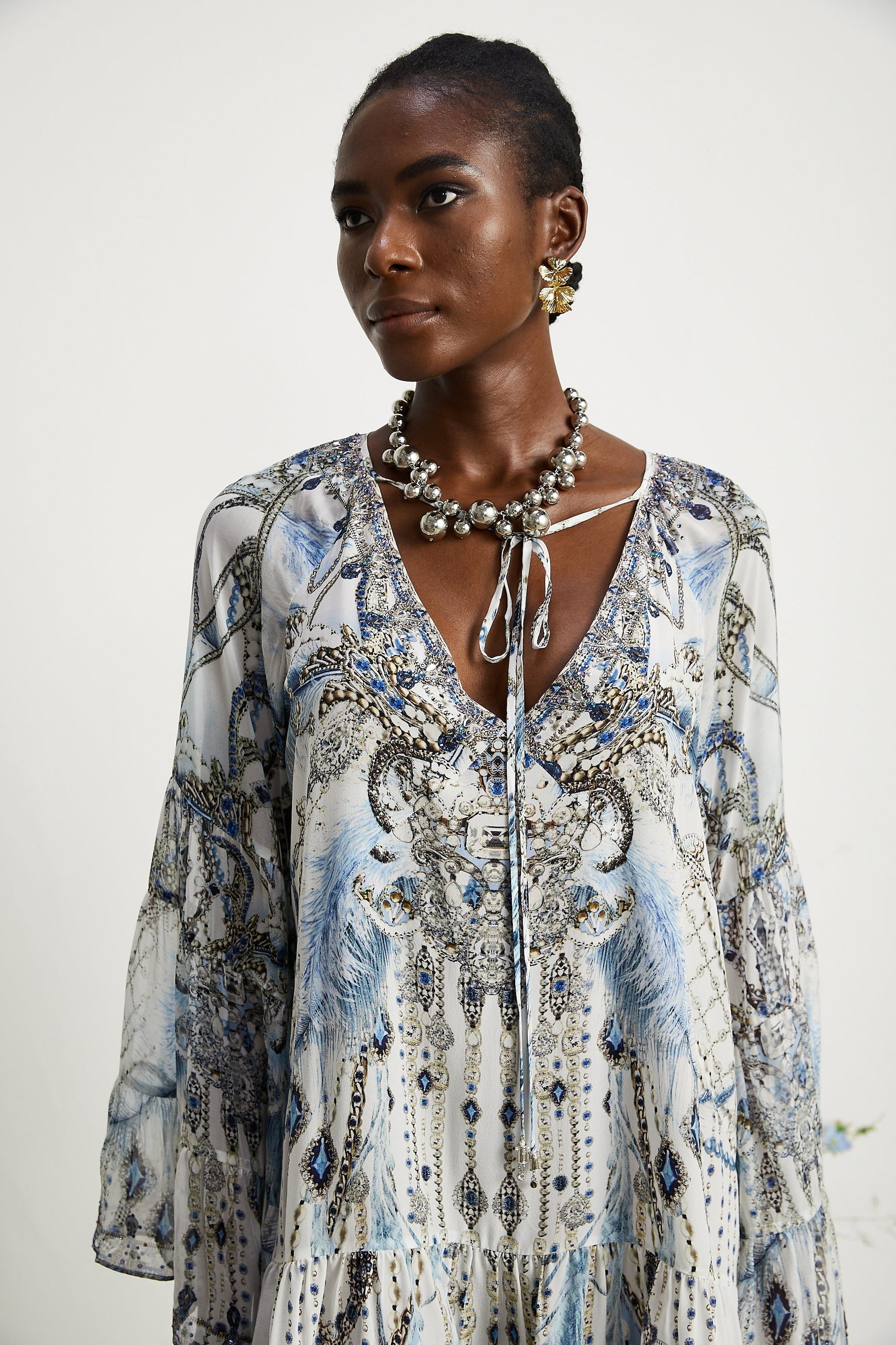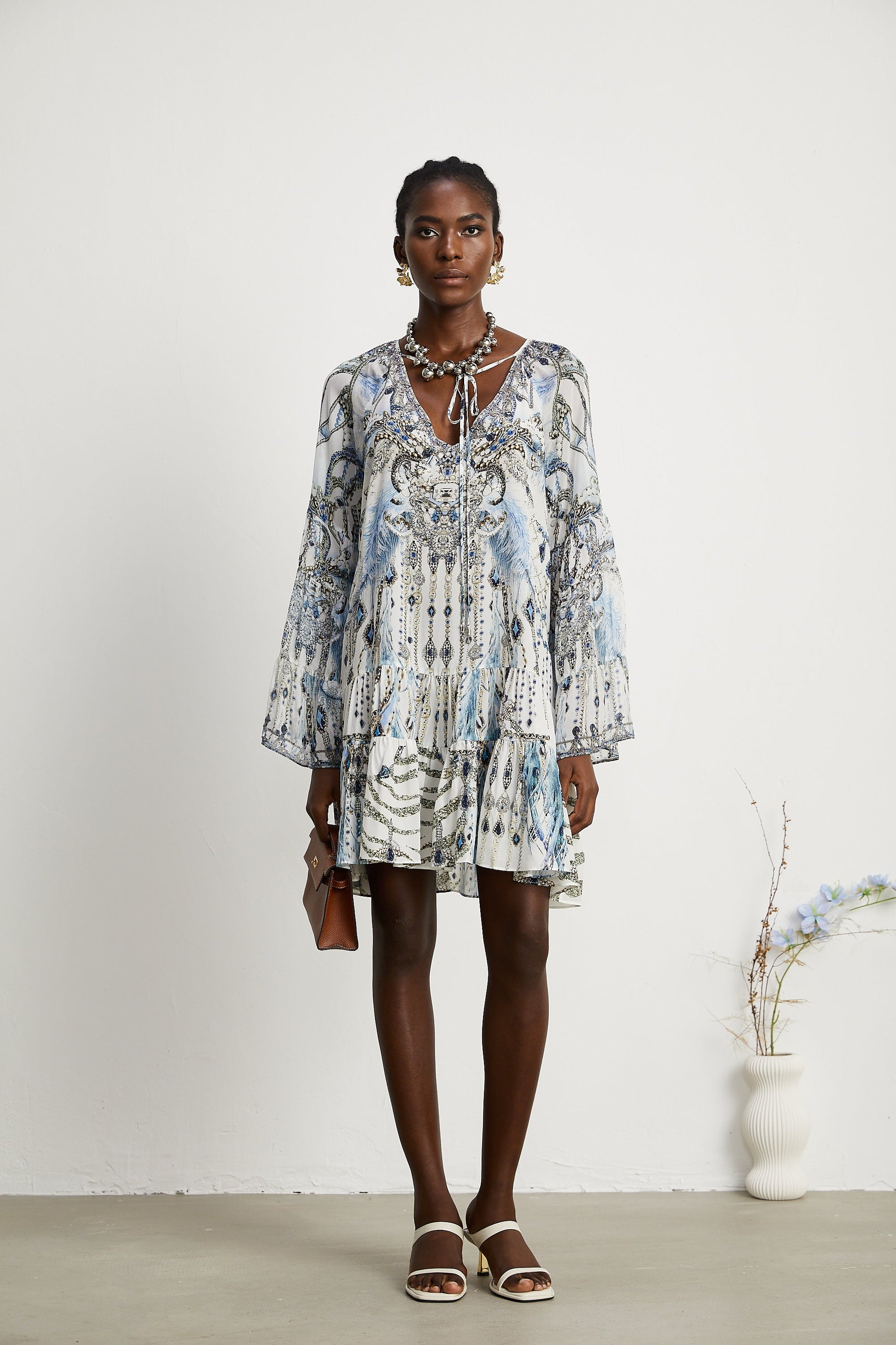 Clarabelle İpek Kloş Buzgülü Panelli Elbise