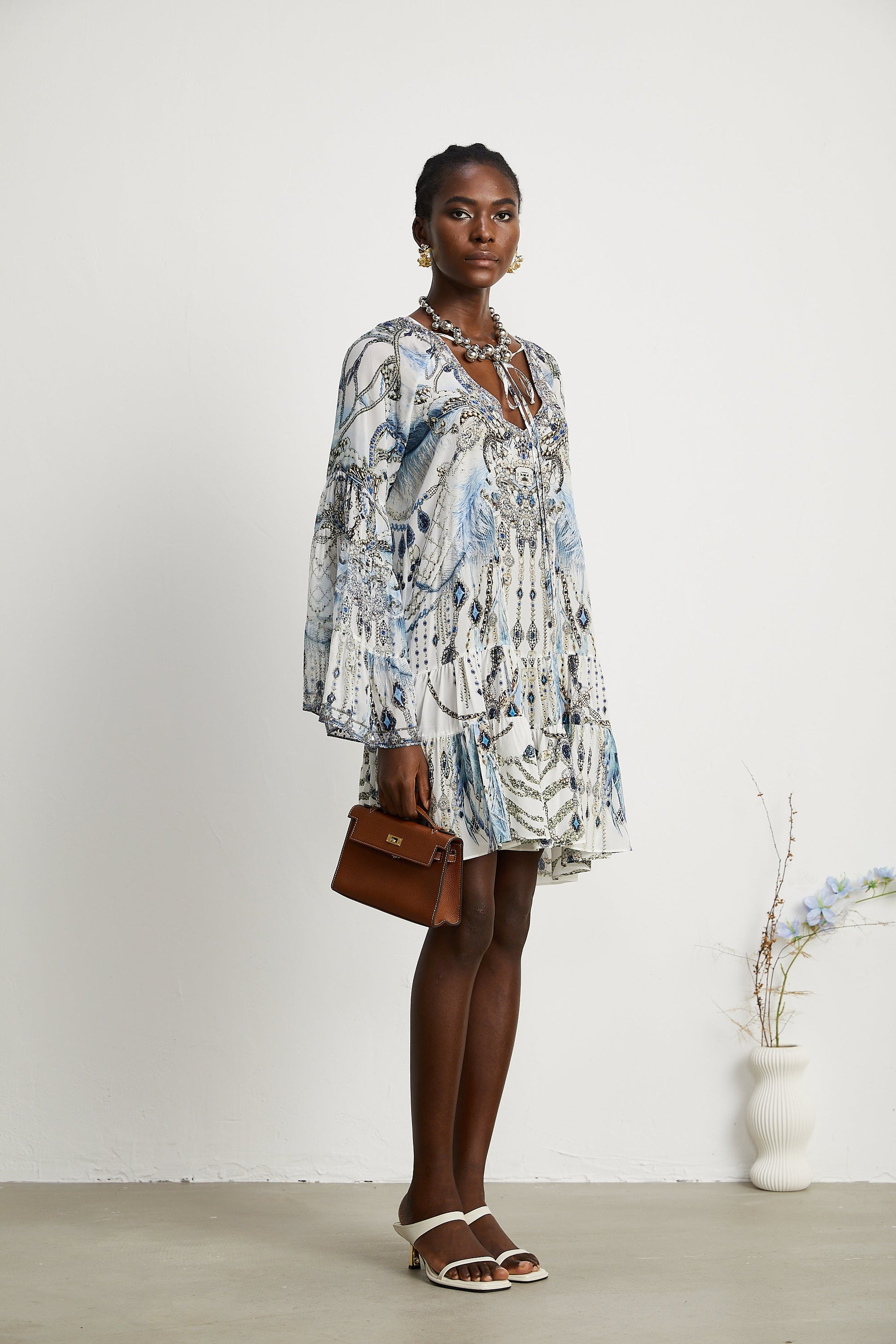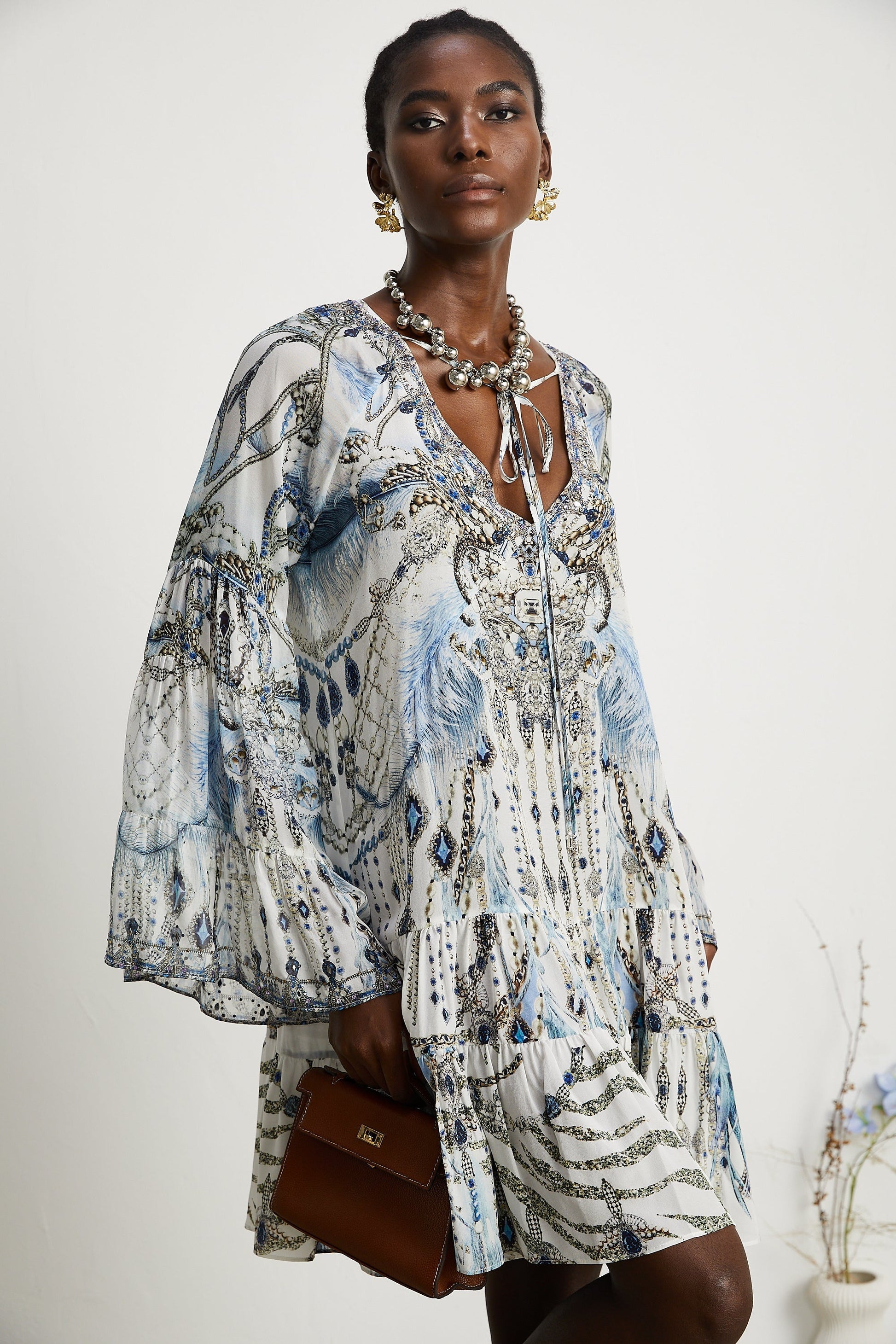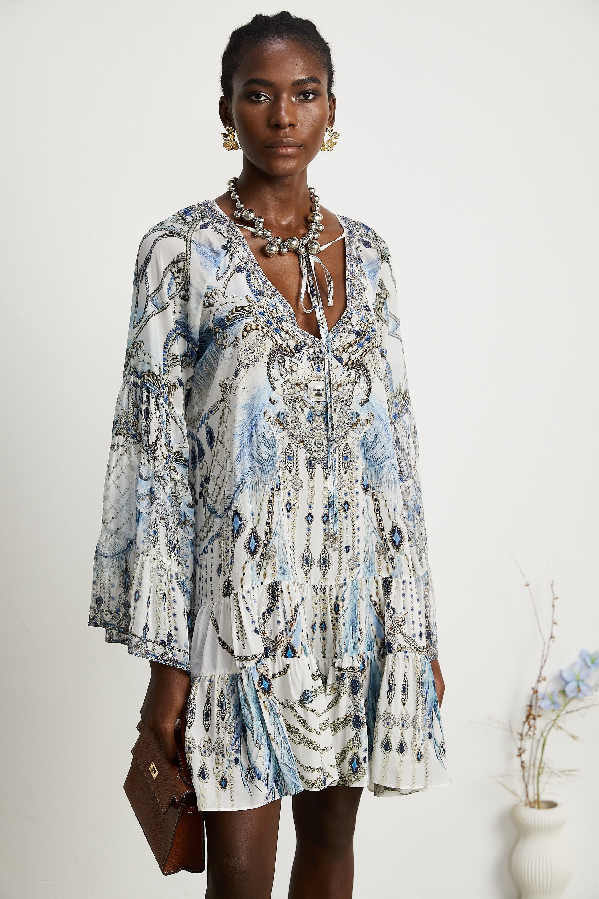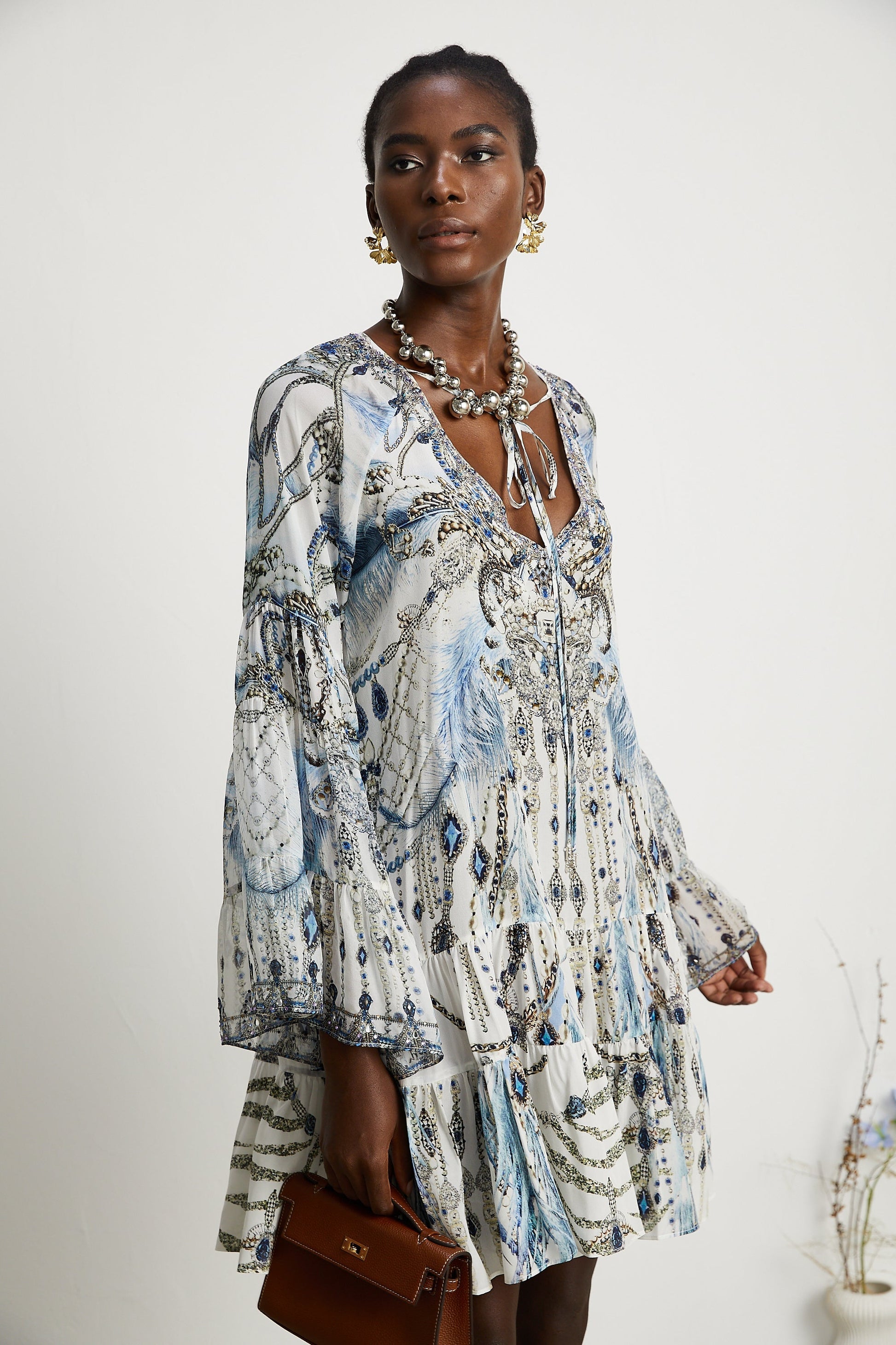 Clarabelle İpek Kloş Buzgülü Panelli Elbise