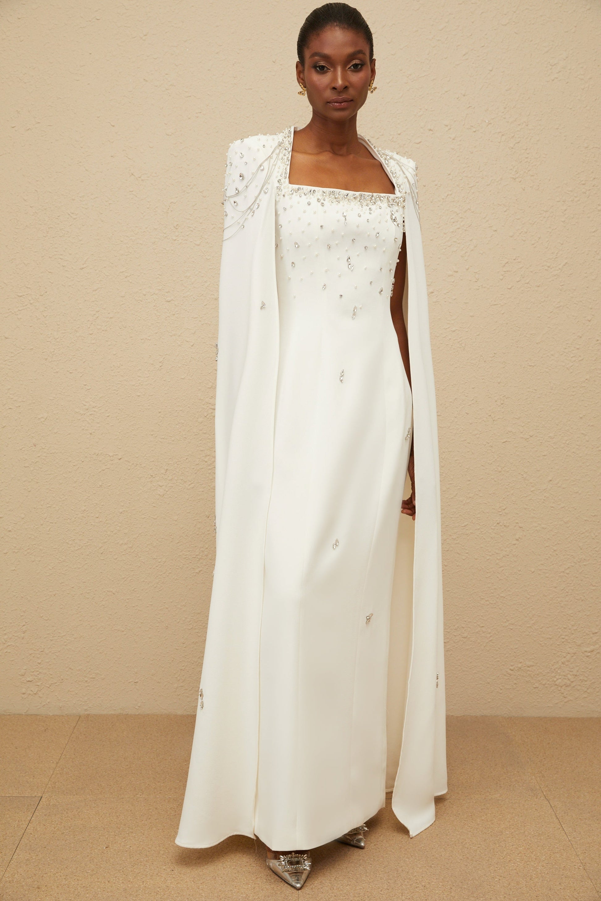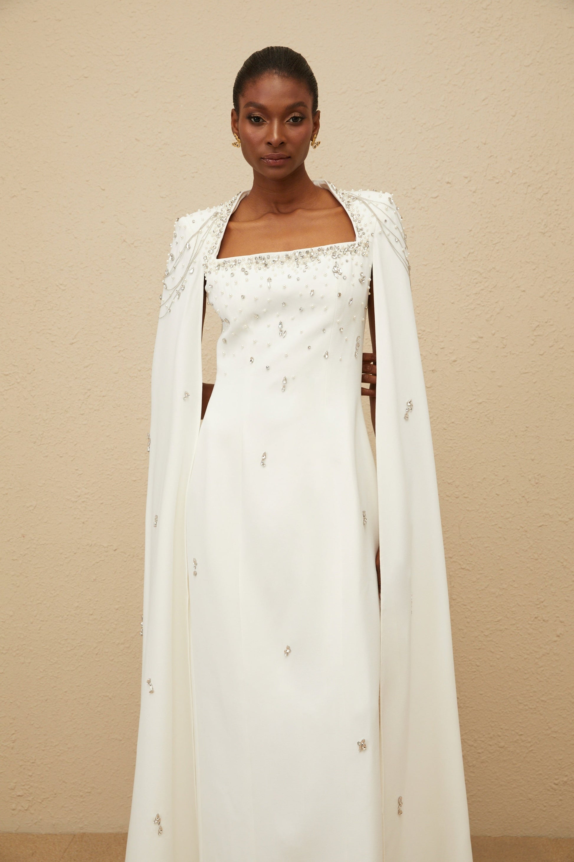 Épuré Beyaz Süslemeli Pelerin Elbise