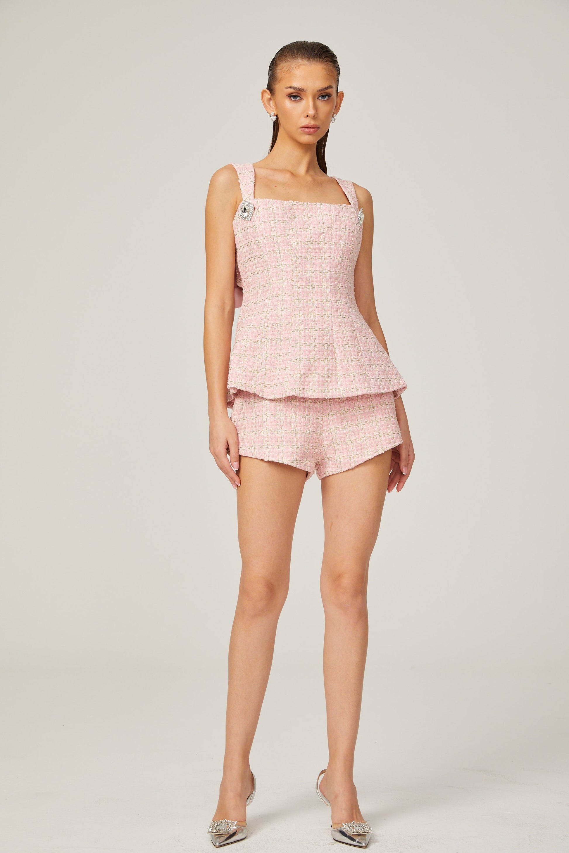 Hélène Pembe Tüvit Üst Ve Şort Eşleştirme Seti
