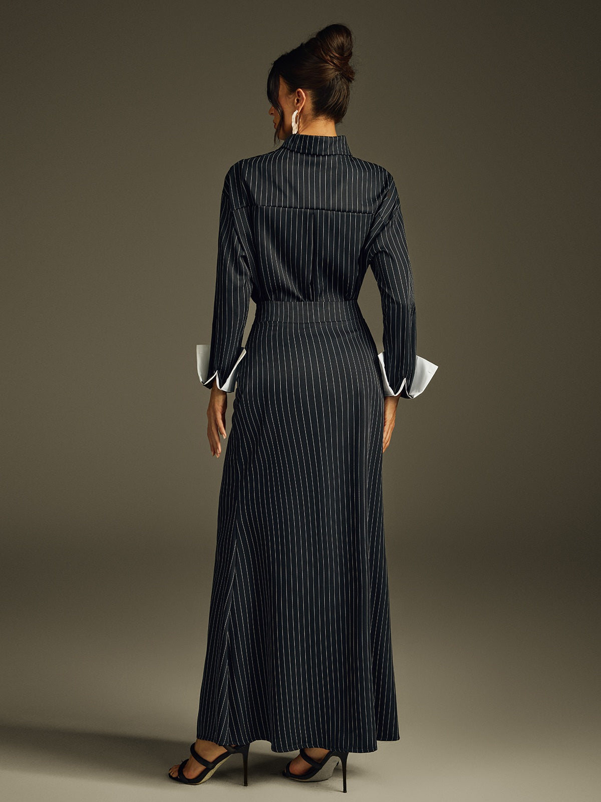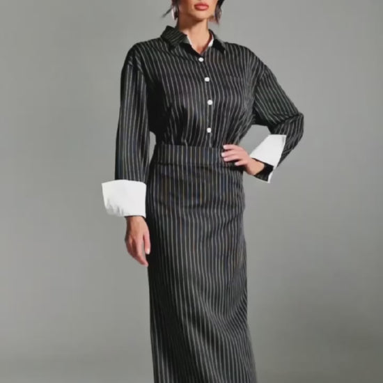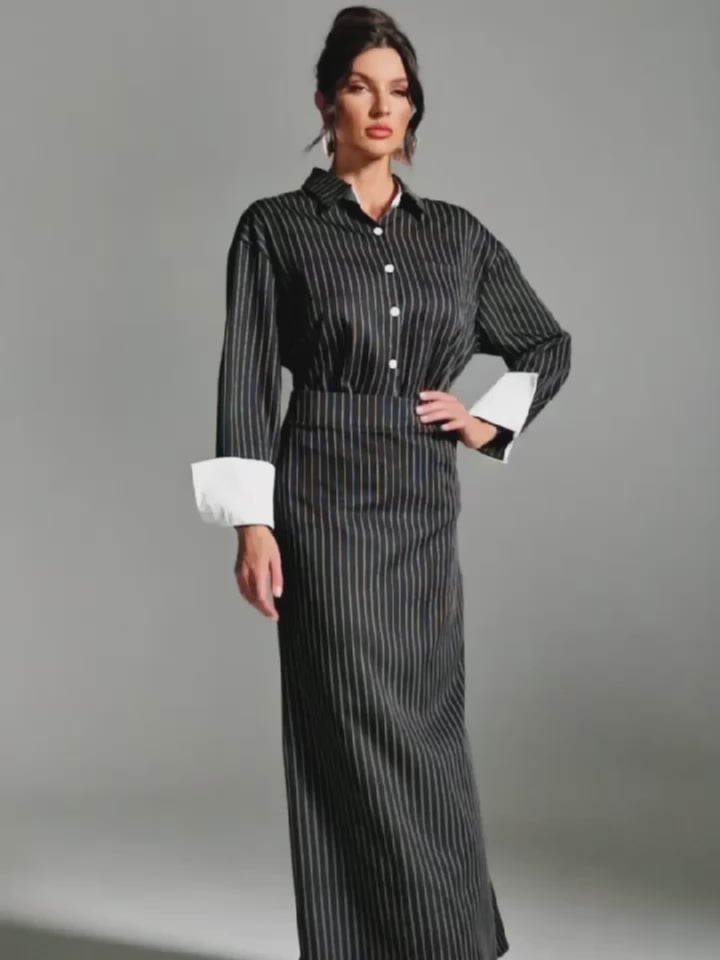 Hryixel Katlanmış Yaka Çizgili Etek Takımı