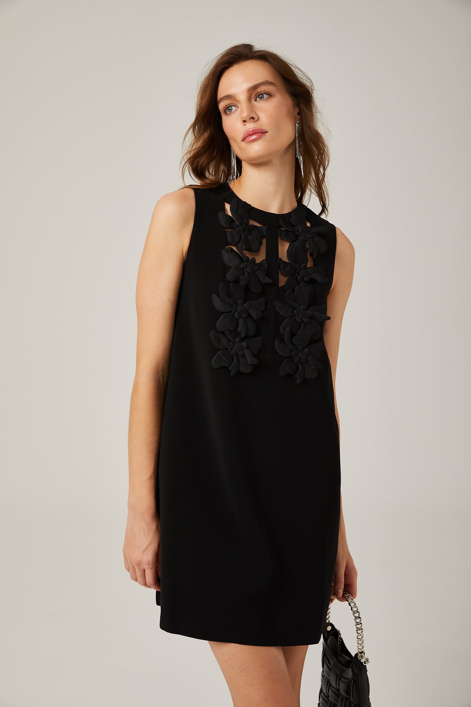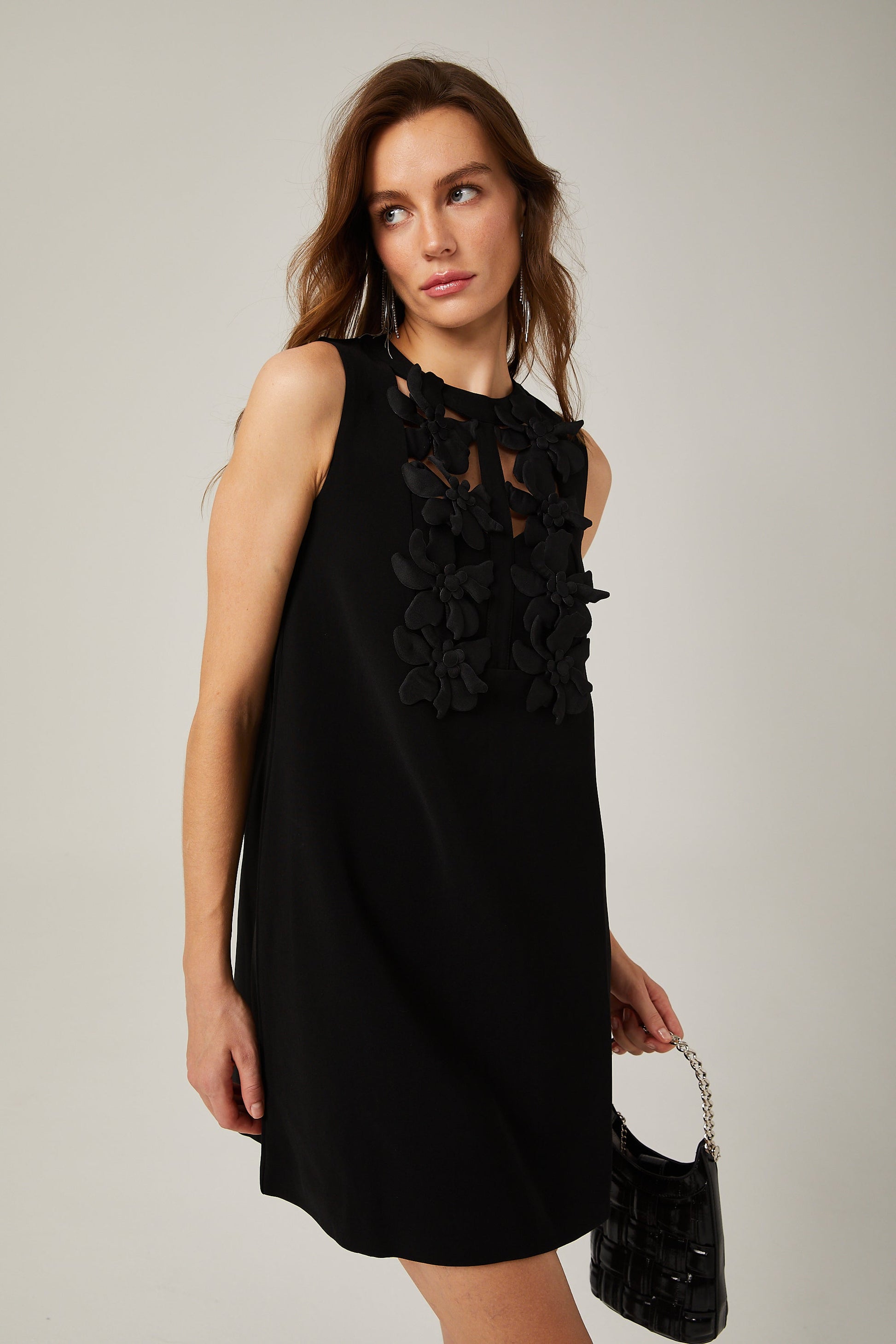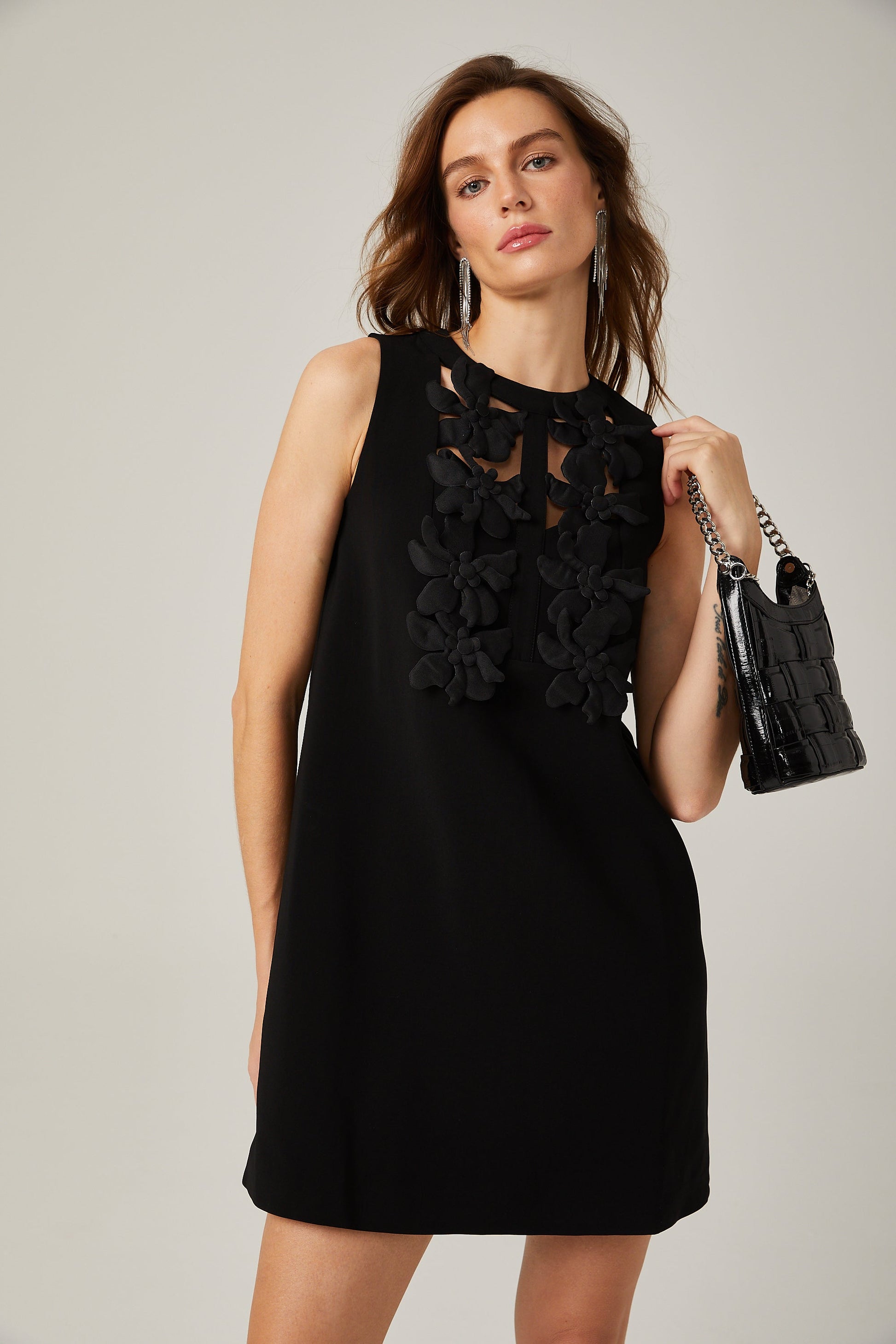 Isolde Siyah Delikli Çiçekli Mini Elbise
