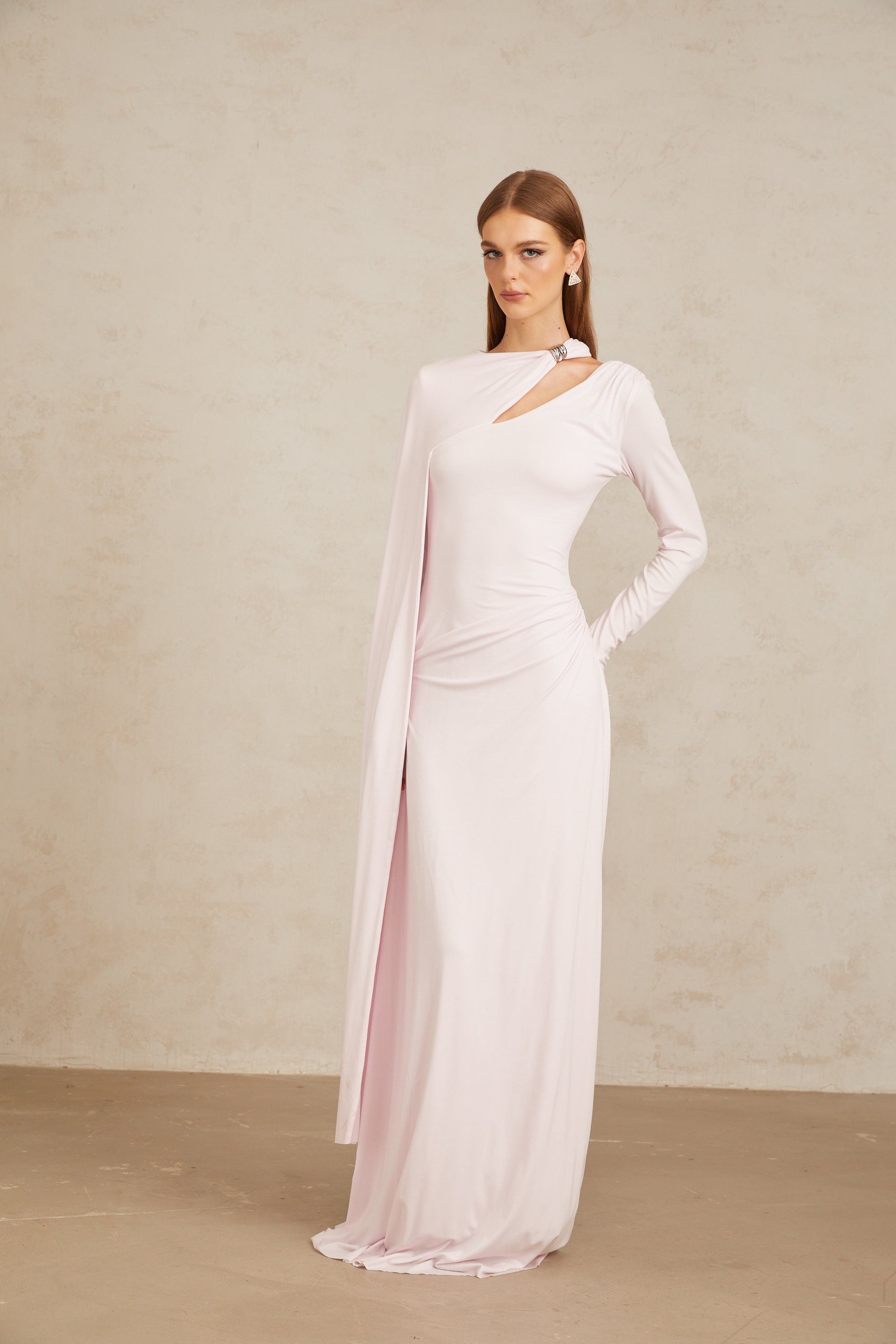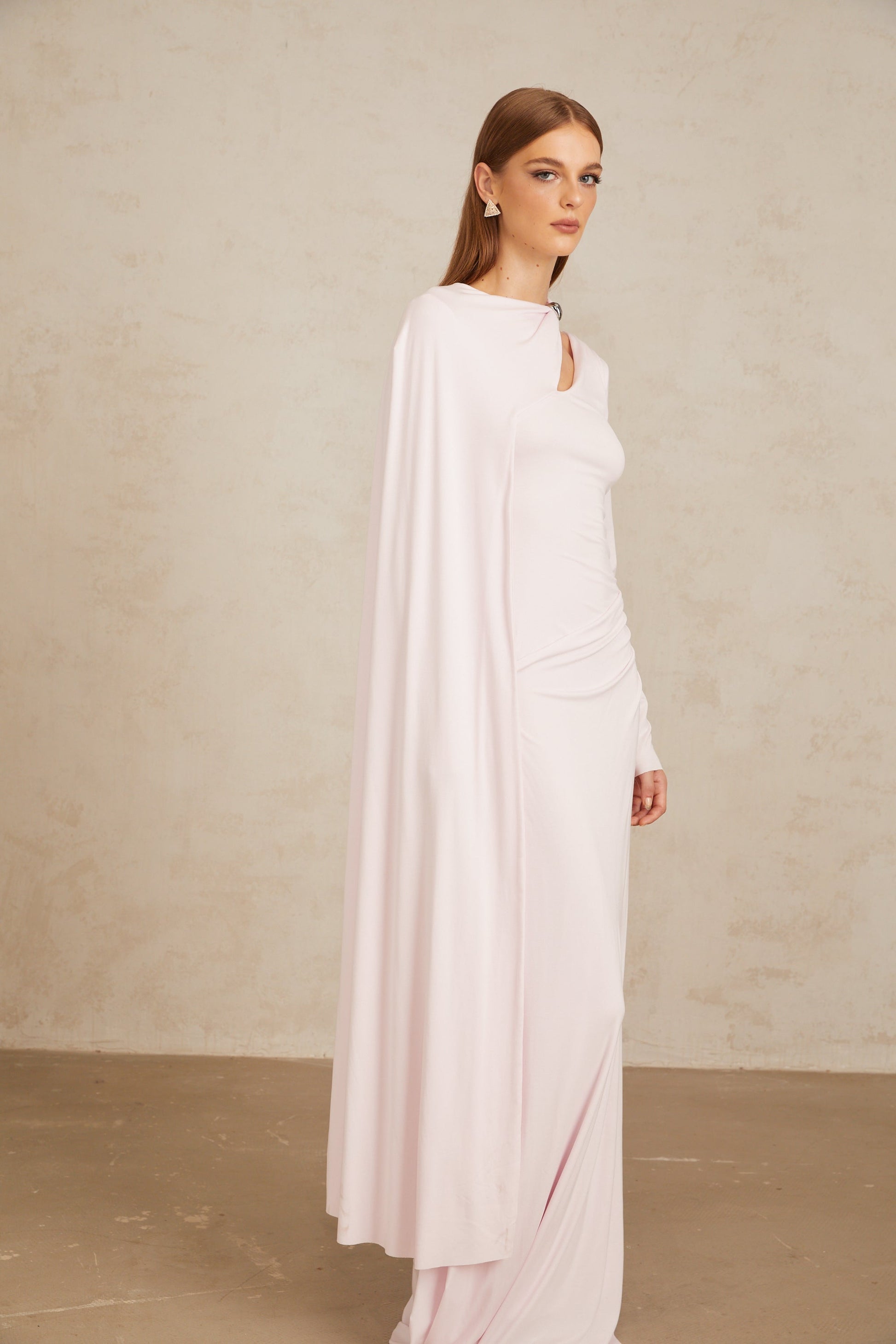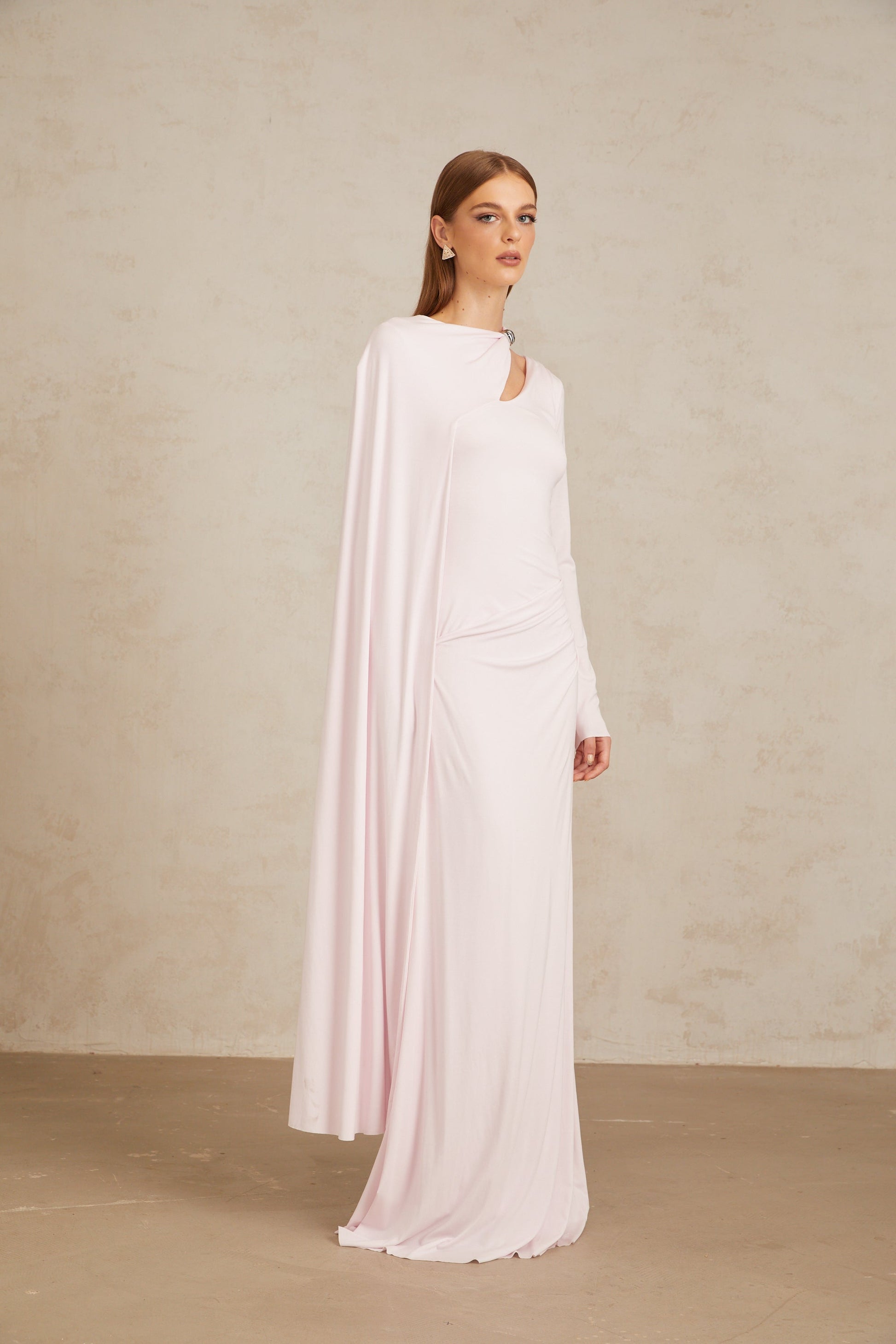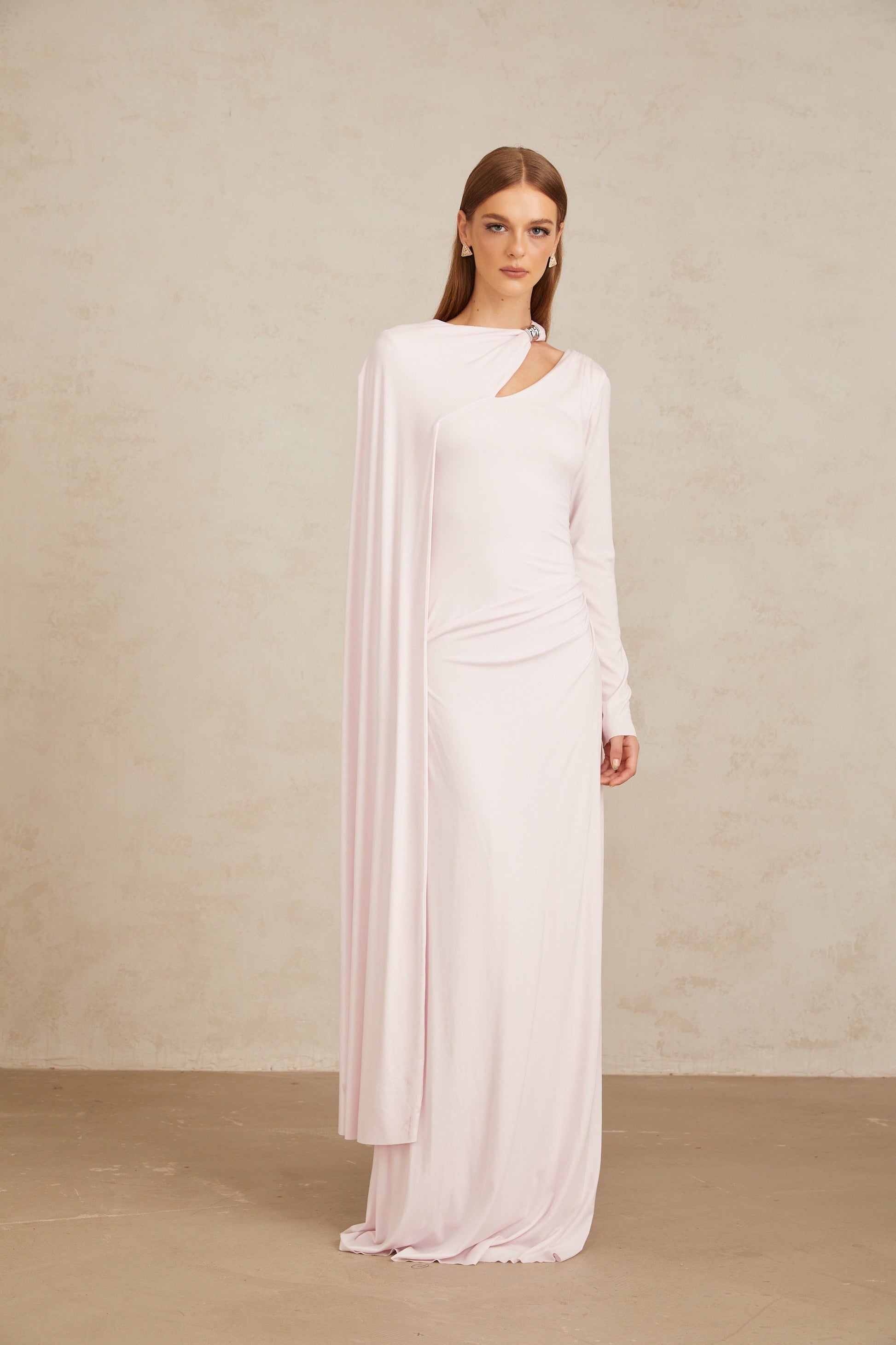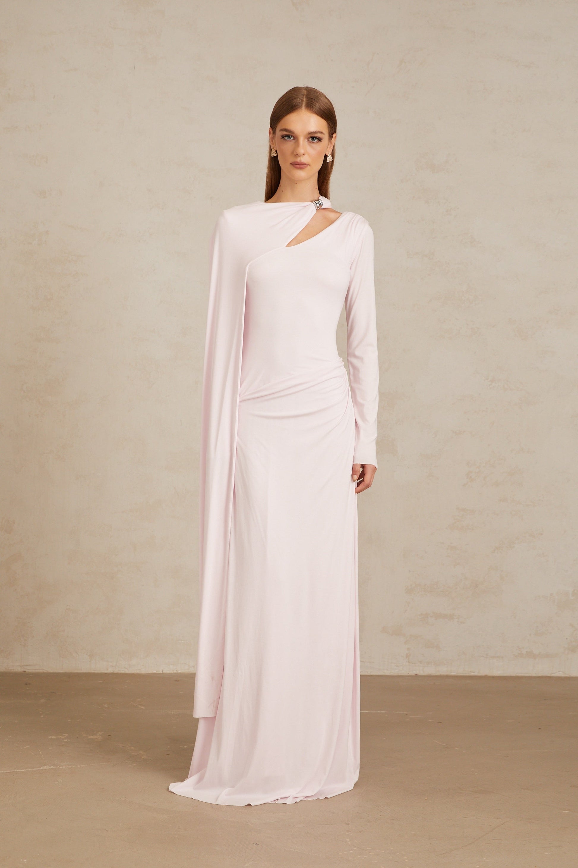 Josette Pembe Çapraz Şal Kesim Uzun Elbise